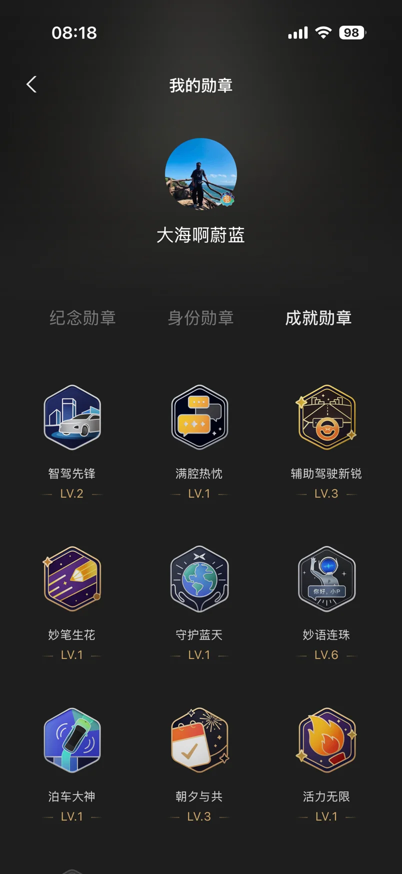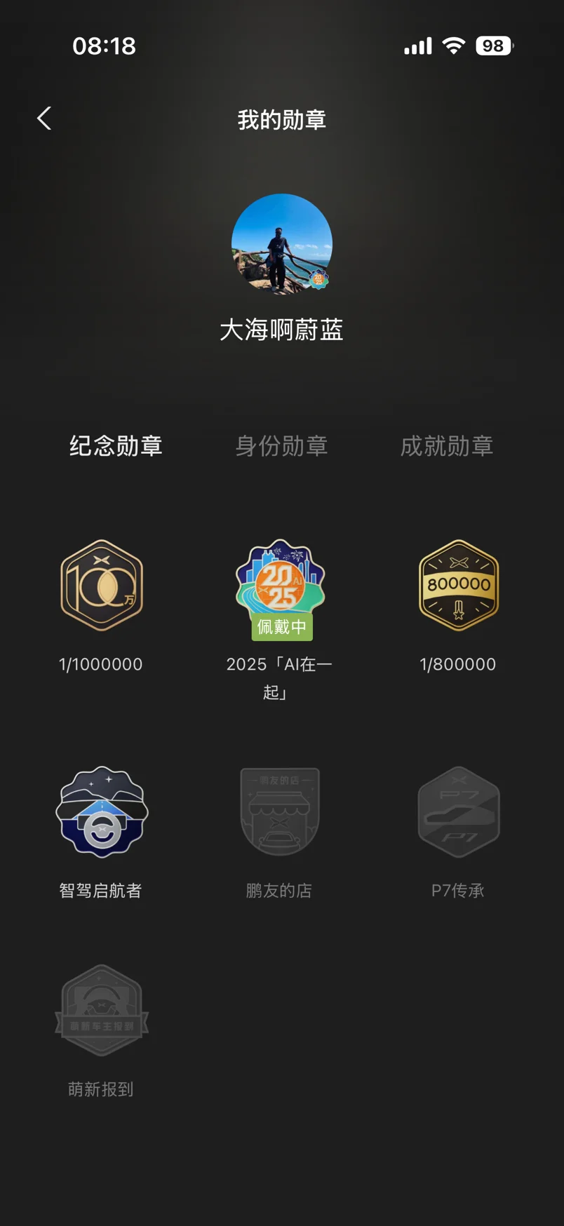 目前获得的勋章,也是一步步跟小鹏建立深厚情谊的过程。开得越多,勋章越多,促使我们加油开!希望能出一个个人勋章,可以自己设计,也是很好的互动啦!