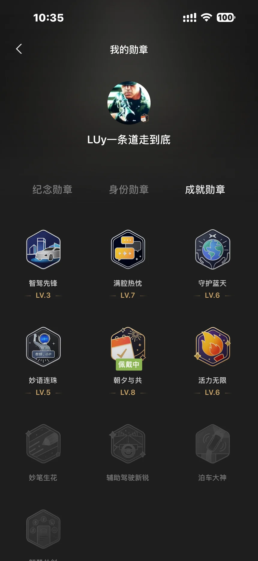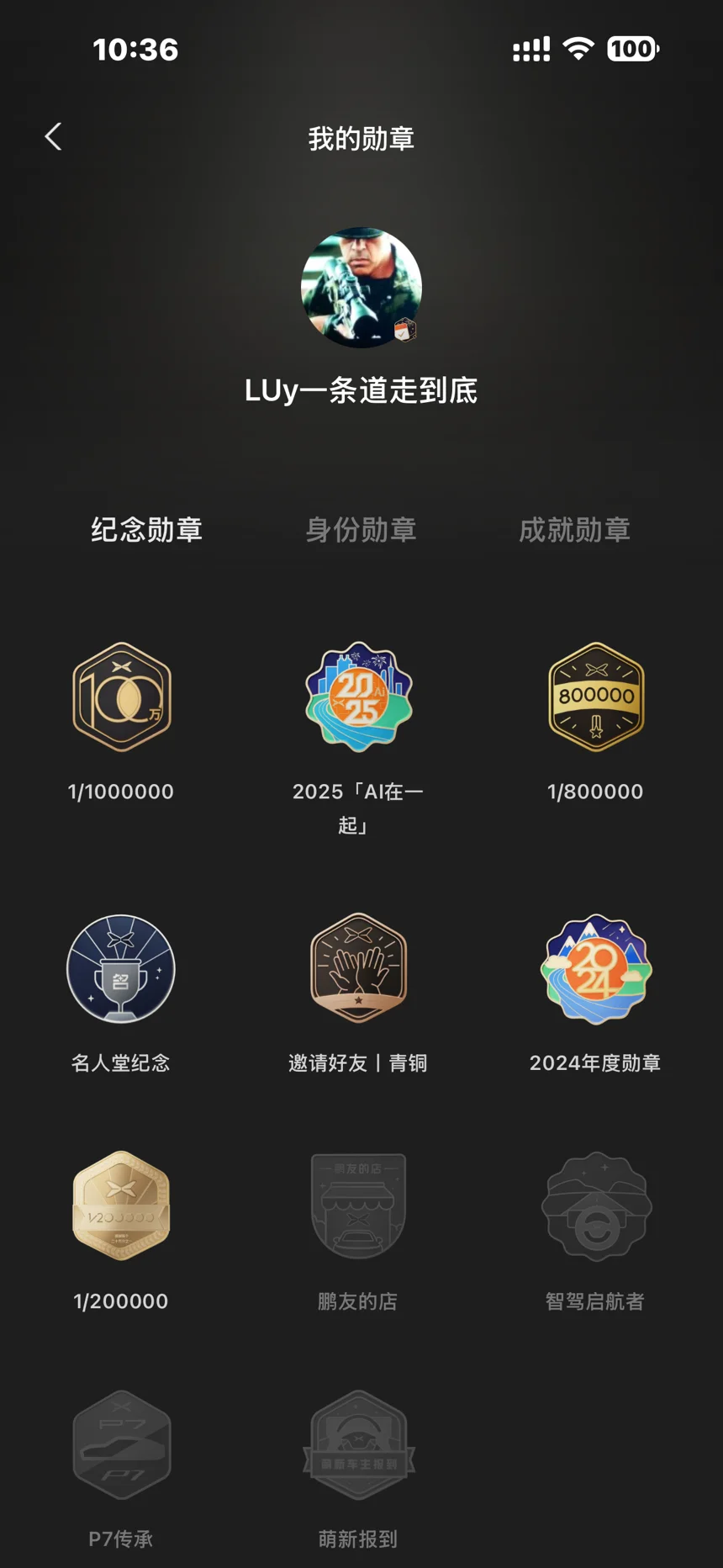 小P开了五年了,勋章不知不觉也收到十几个了,每次得到新勋章就会第一时间佩戴一下,支持小鹏的同时,希望小鹏也能支持老用户,更新完善老车的各项功能。