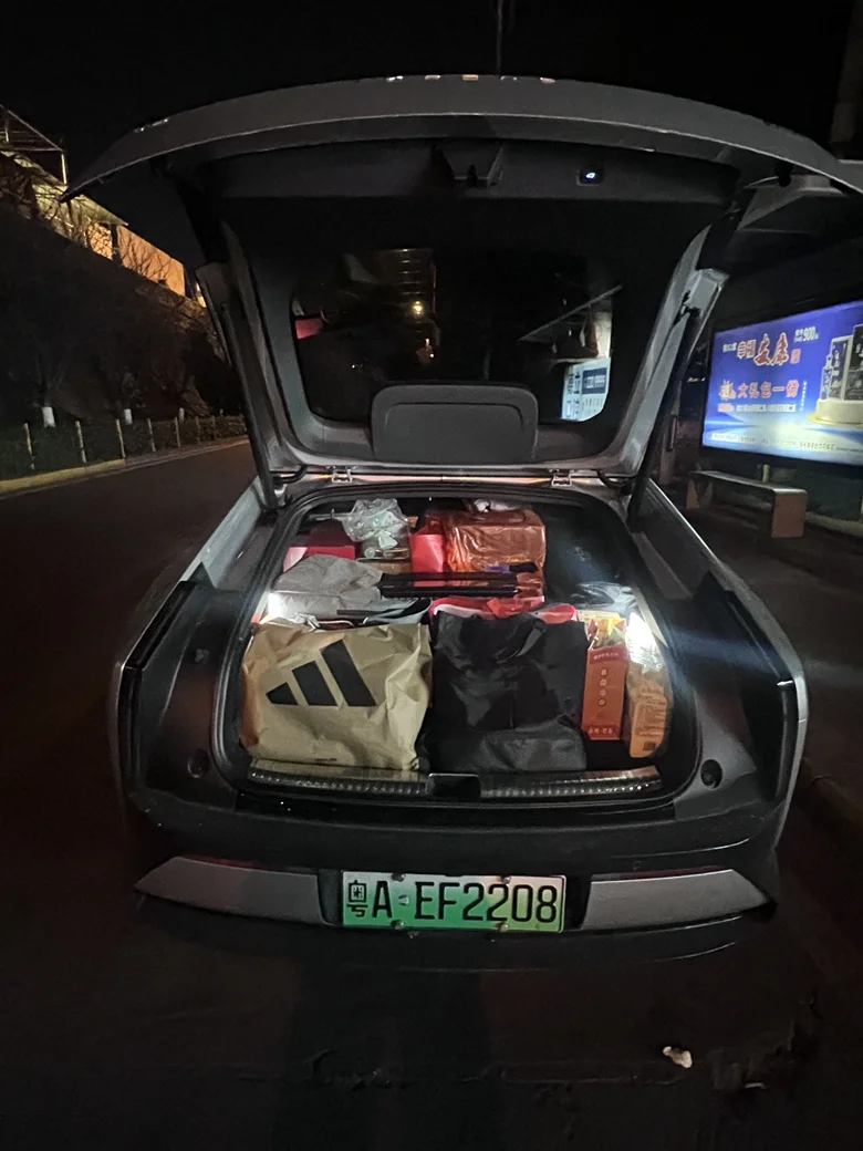 后备箱塞得满满当当,空间还是比较深的,下次试一下放倒睡车里。