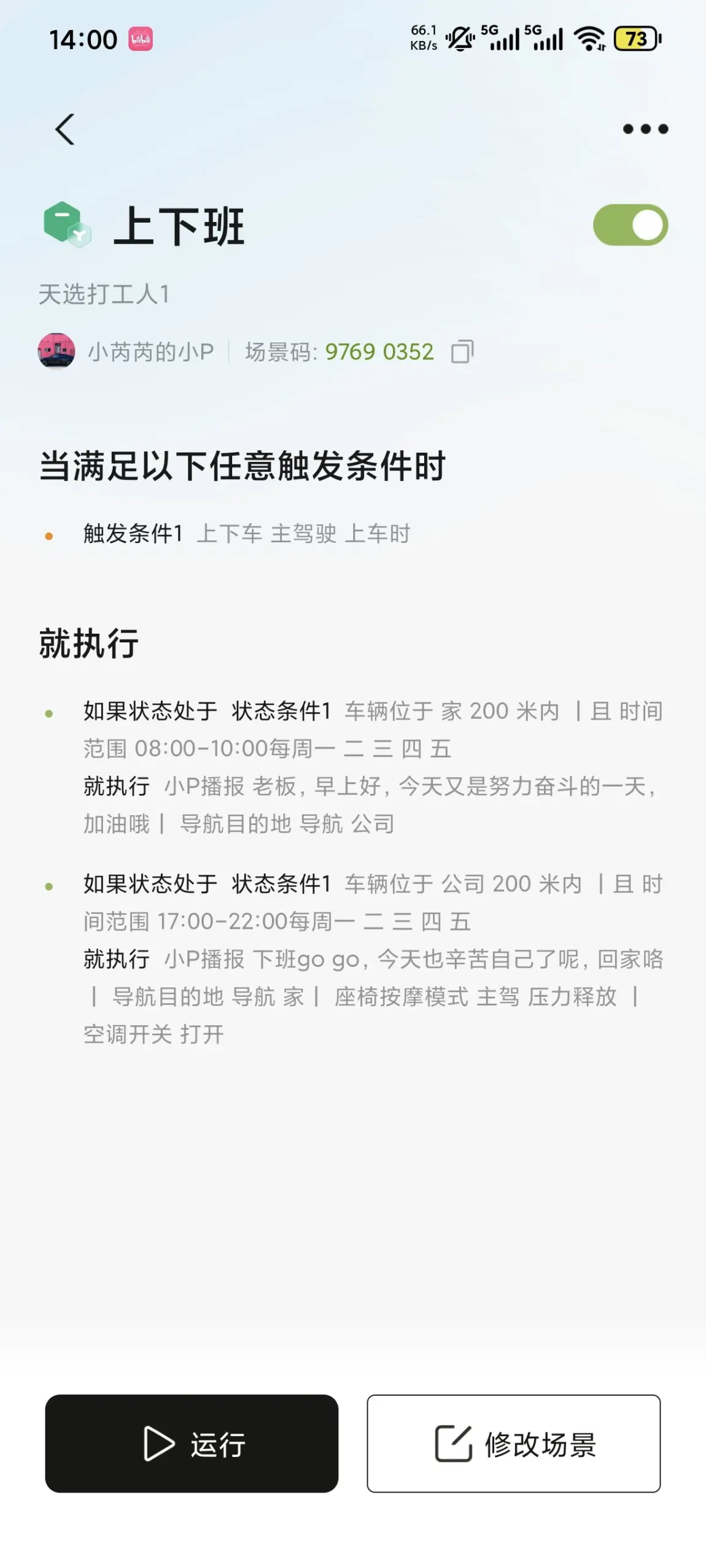 车内最治愈时刻是下班了智慧场景自动运行小P温暖提示,然后小P播放着音乐,开启座椅按摩,闻着车内香芬,朝着家的方向开去回家吃热腾腾的饭菜,很享受这种疲惫一天后得到短暂放松的感觉。
