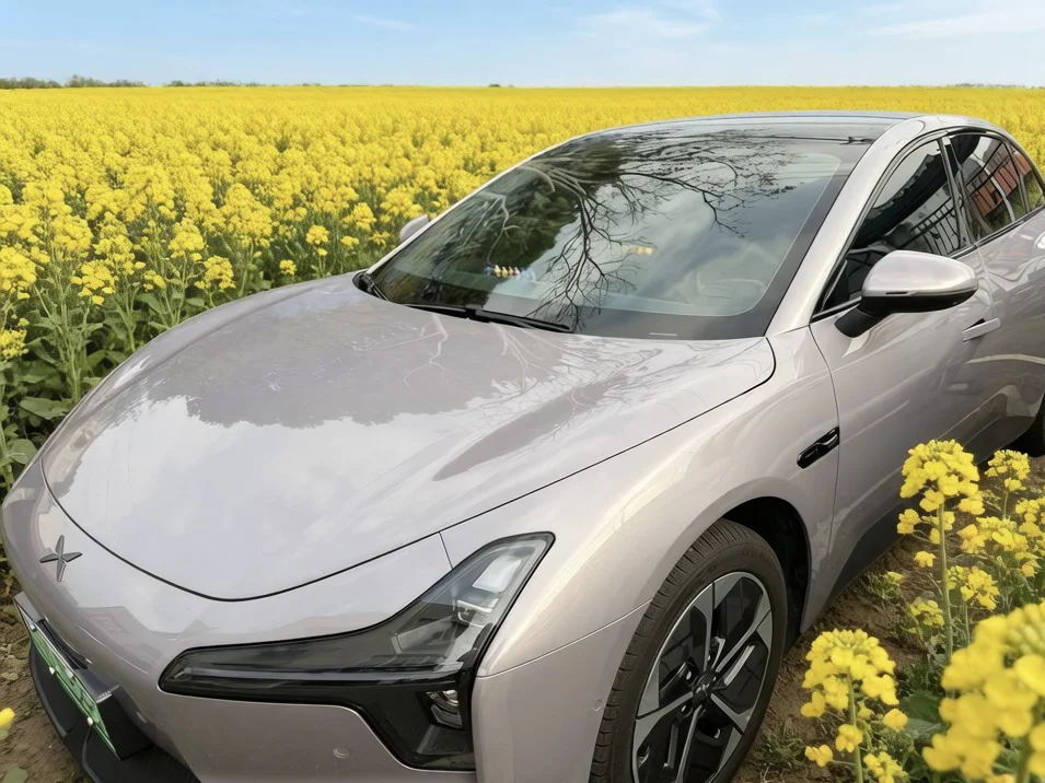 阳光下金黄一片,油菜花开得正旺 🌼 远处树林和天空相映成趣,像一幅油画 。天空蓝蓝的、油菜花泛着光芒。这辆紫色汽车停在一片黄色油菜花丛中,阳光透过树叶洒在车身上 🌼 阳光透过树叶洒在车身上,光影交错间透着静谧感。#小鹏汽车 、#小鹏MONA、#和TA一起开进春天里。
