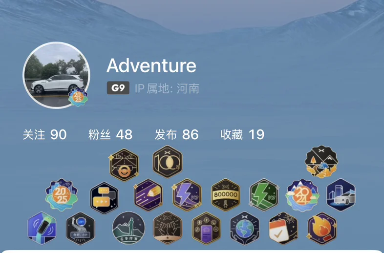 数了数,共有19个勋章🎖️,智驾,座舱,充电,发帖得来的
