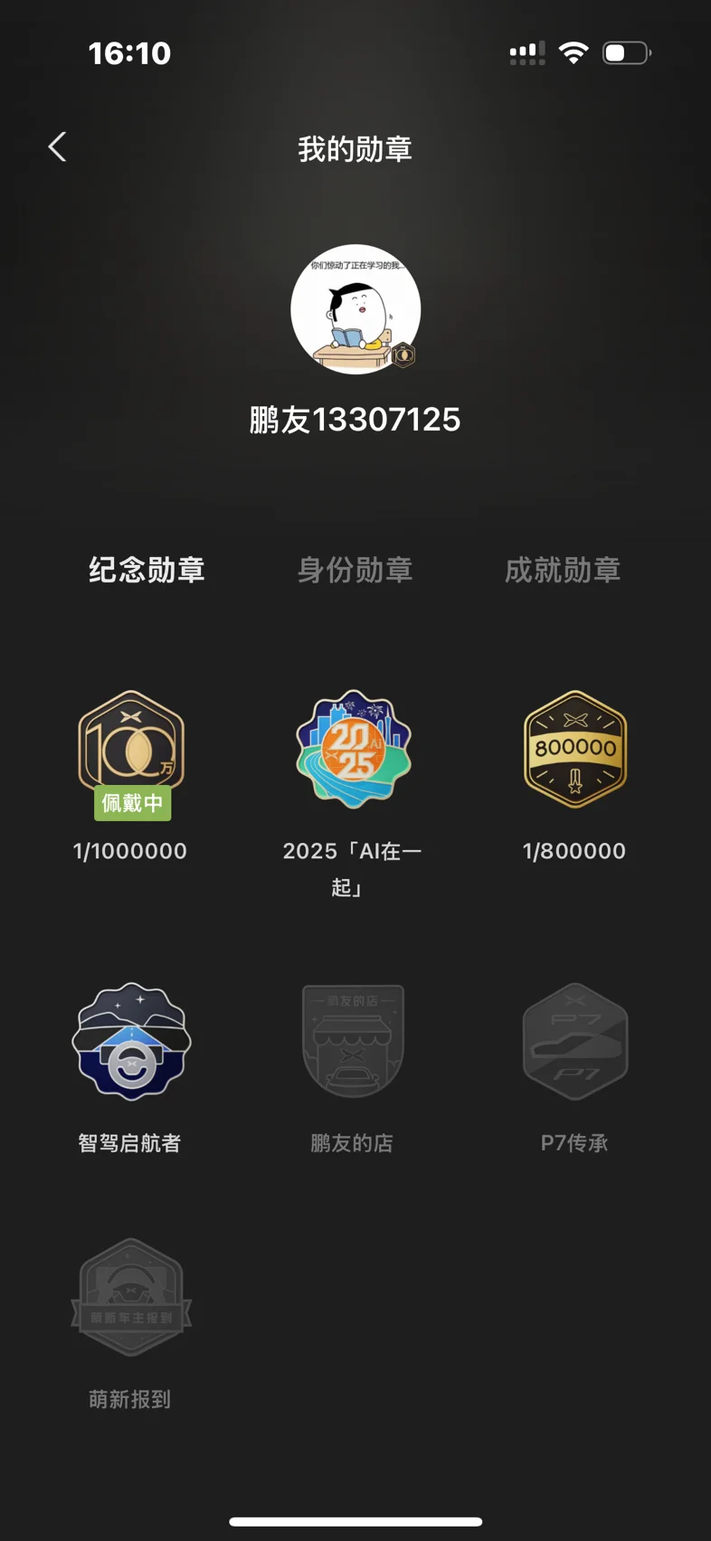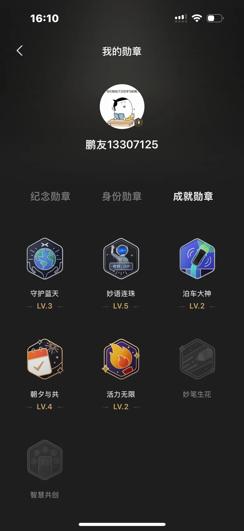 从提车到现在还没满一年13块勋章,每块勋章都是一个回忆,最喜欢的勋章是100万分之一那个。继续加油