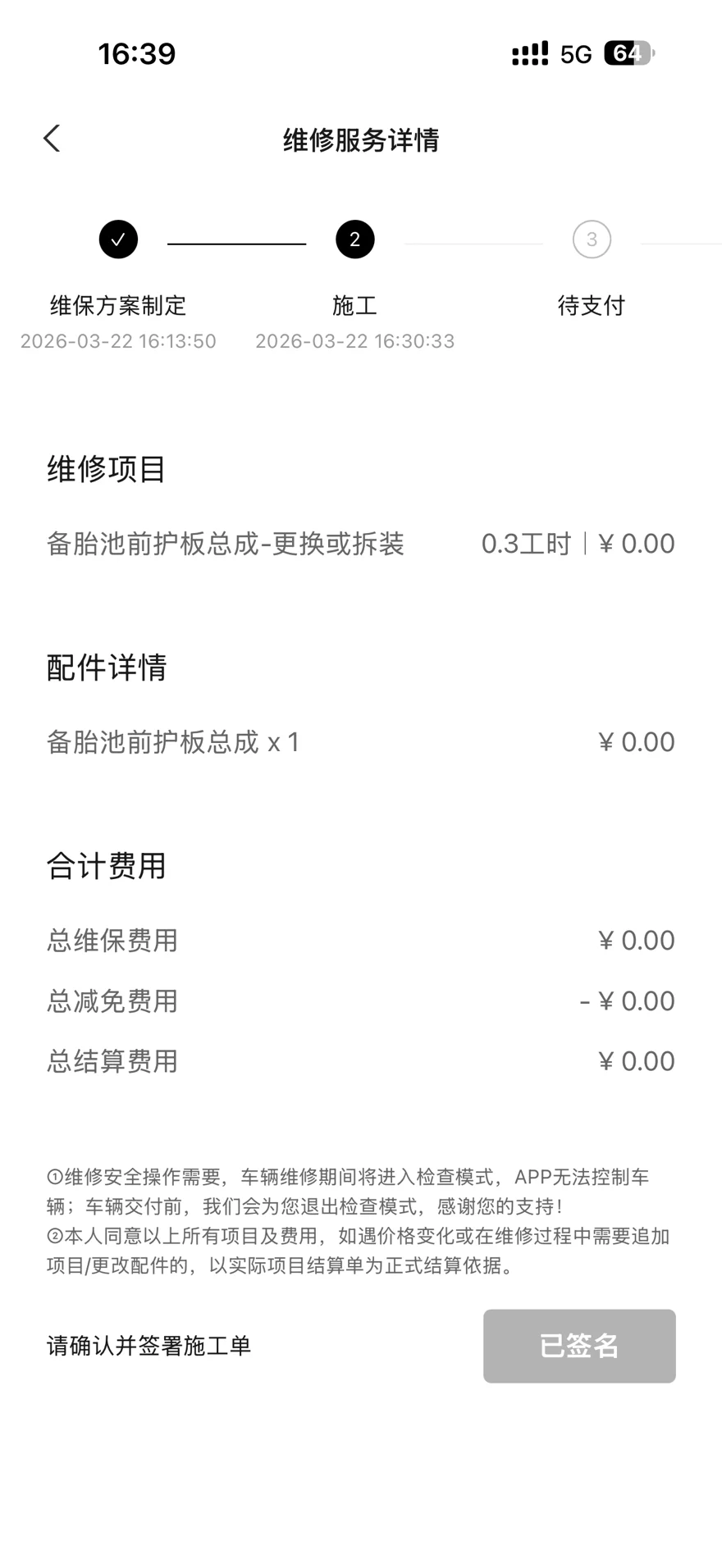 提车已经4个月,发现后备箱异响,到了售后服务中心检测了后底板异响,果断下单订货,订货周期3天,今天过来更换,服务效率非常高