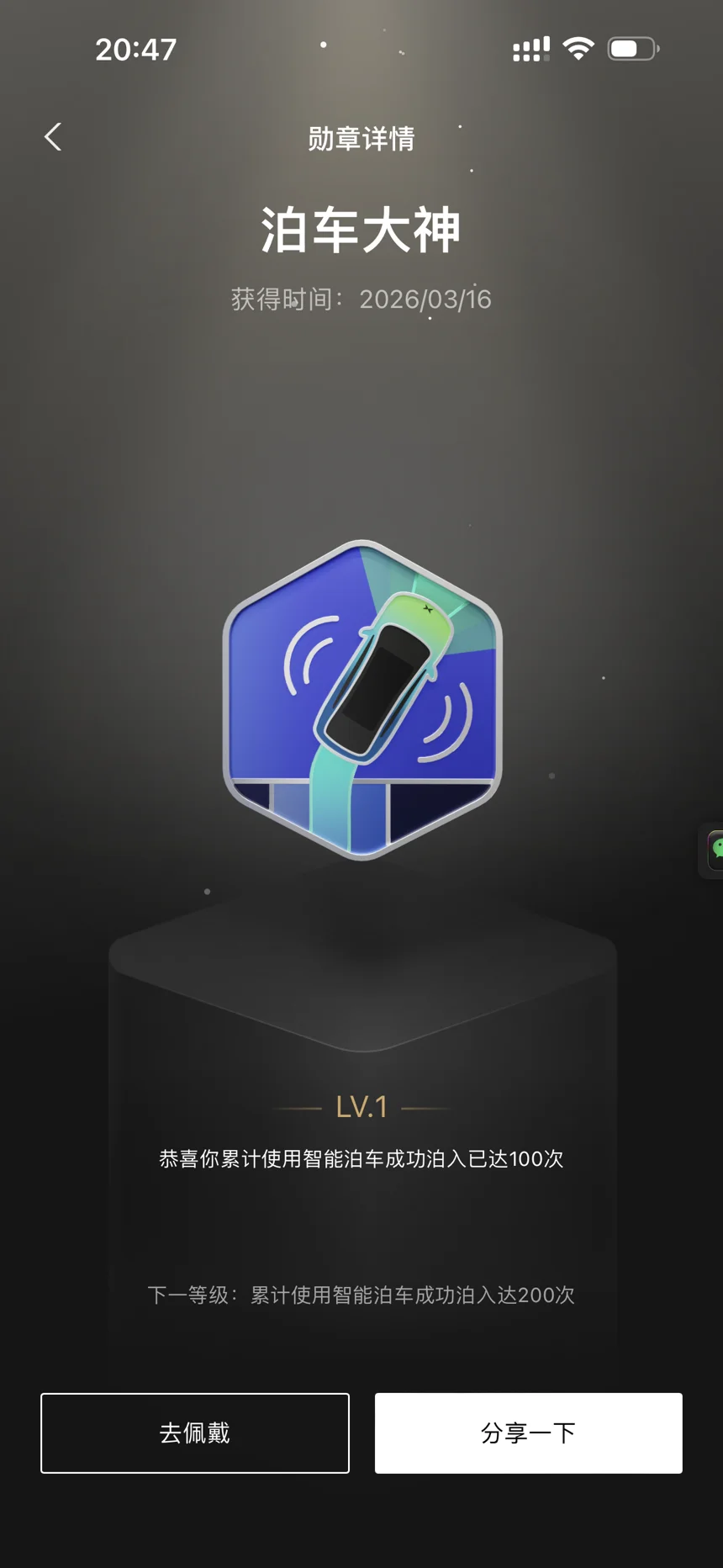 我的勋章墙打卡!首枚勋章是智驾,这是属于我的出行印记