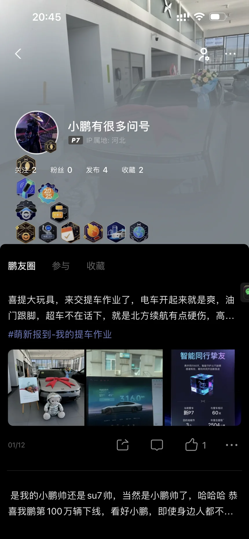 打开小鹏App勋章墙,看着一排排亮起的勋章,满是回忆。
