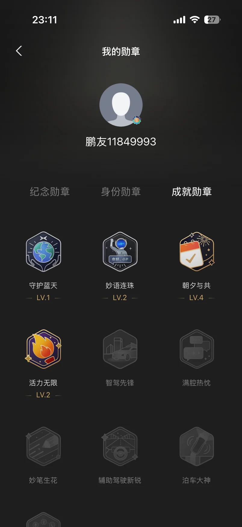 不知不觉已经开了1年,收集了10枚勋章,争取把所有勋章收集齐,加油小鹏