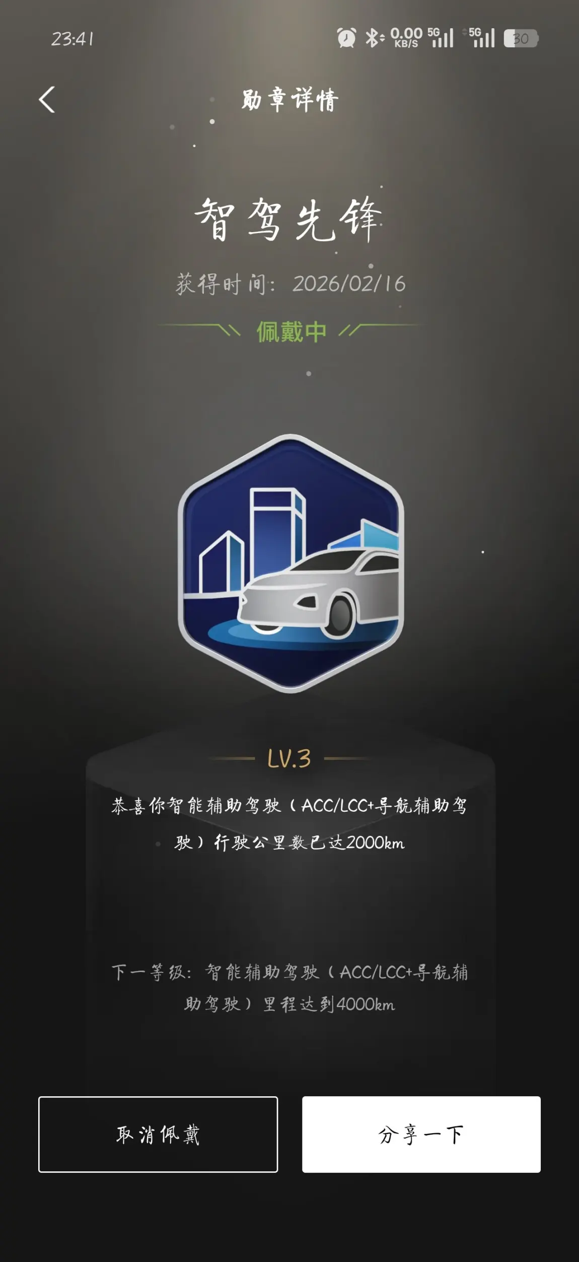 现在有12个徽章,目前佩戴的是智驾先锋。