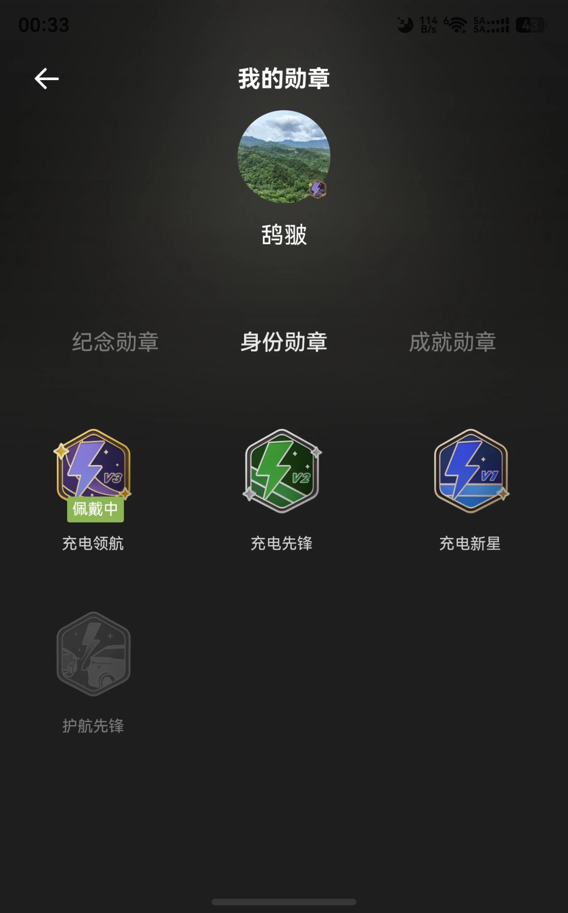 活动挺好,回看了一下17个勋章了,佩戴的是V3充电领航,经常在小鹏自营充电站充电,很方便,一路升级到V3很有参与感,希望可以出V4 V5并附带更好的会员权益。