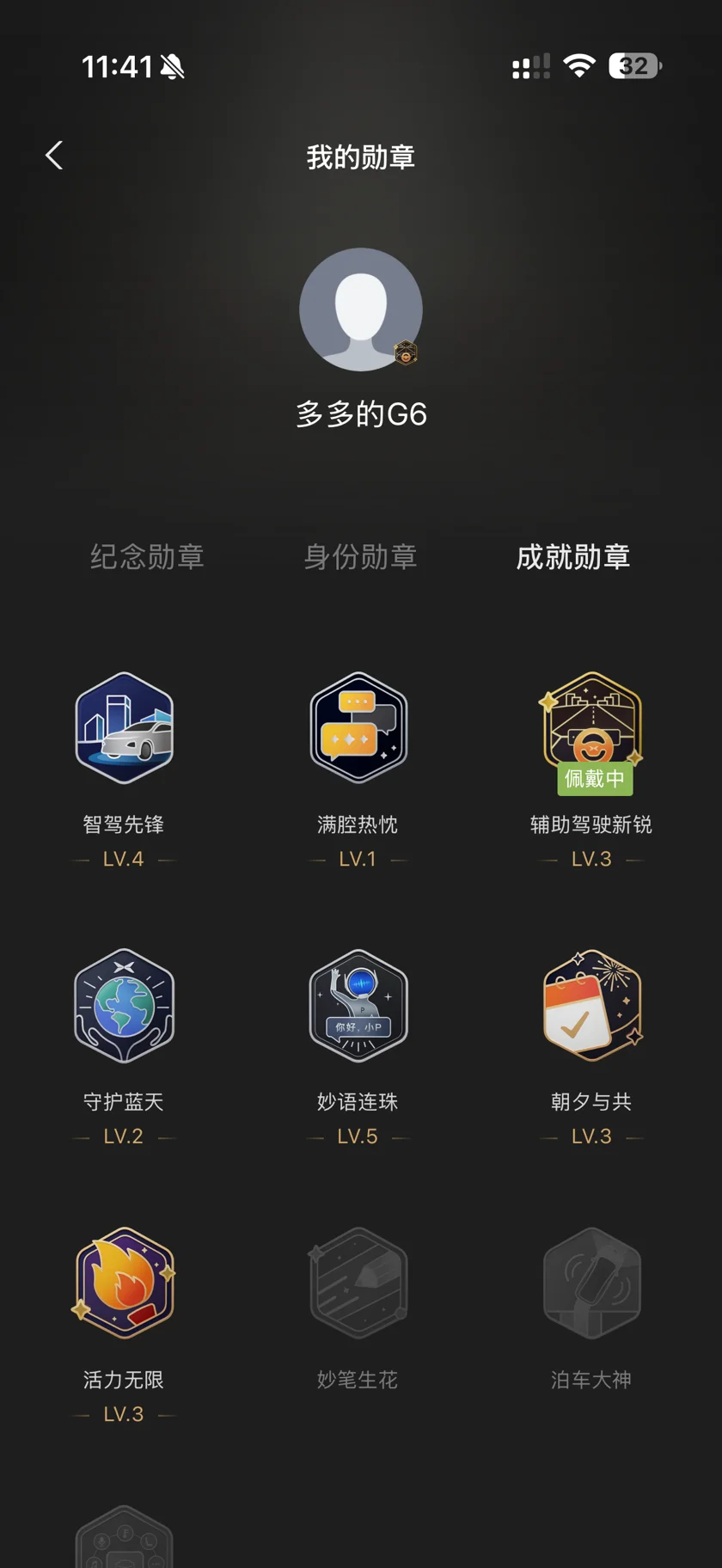 #晒晒我的勋章# 打开小鹏App的勋章墙,满满的成就感!从「萌新报到」到「智驾先锋」,从「守护蓝天」到「妙语连珠」,每一枚都记录着与G6相伴的日常。最爱的还是「活力无限」和「1/1000000」百万纪念章,每一次点亮都像拆盲盒的快乐。继续加电,把勋章墙填满!🚗💨