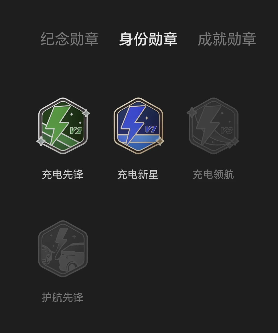 新人努力赚徽章中,最喜欢的是带有成长性的,随着小鹏陪伴时间会升级变化。另外就是会长种类有些少,可以加一些特殊徽章做点特效啥的,也可以和交通管理部门合作搞一些安全驾驶之类的。