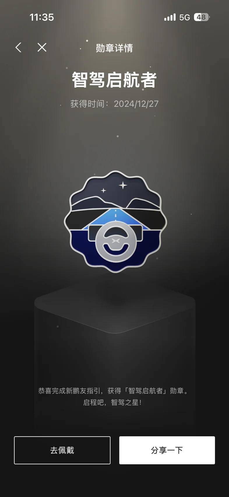 智驾先锋勋章:见证了我从初次尝试NGP到熟练使用城市智驾的全过程,是对智能出行信任度的最好证明;