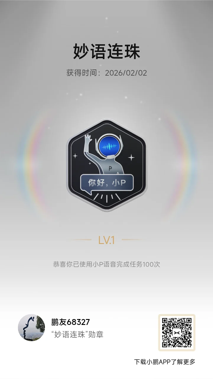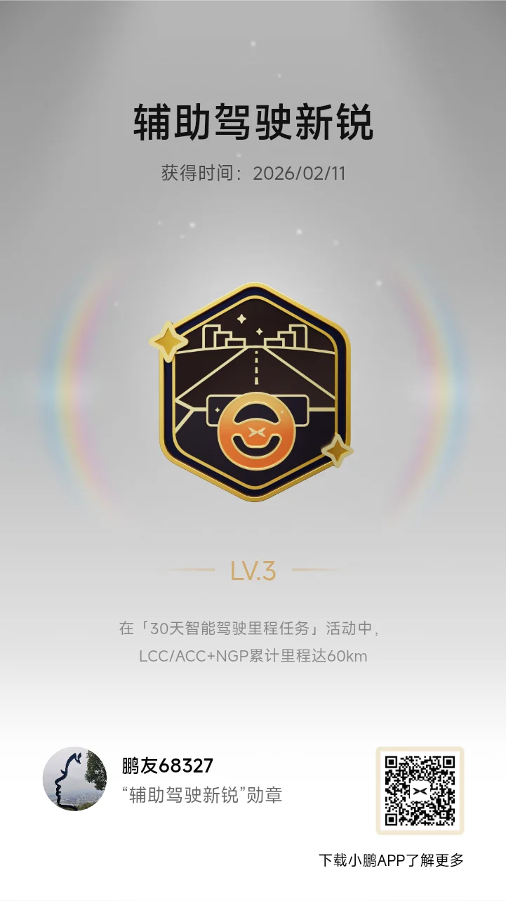2026年2月1日提车,迄今只有6枚勋章。努力追赶大佬们!😁
