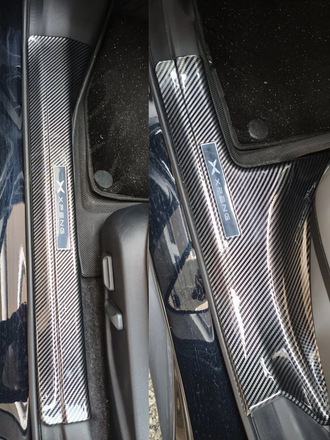 上下车难免蹭到门槛,时间久了留划痕。这款碳纤维门槛条颜值高还防刮防蹭,自带XPENG标识,低调有质感,瞬间提升车内高级感,完美保护原车漆面。