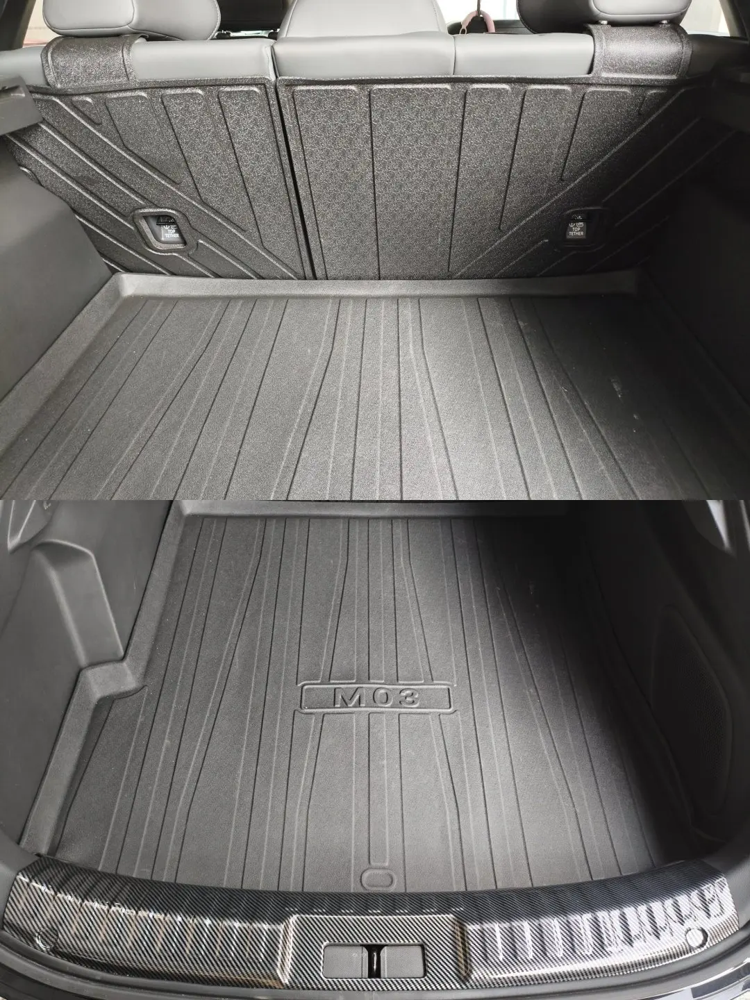 后备箱放重物容易刮花原车地板,这款TPE垫防水耐磨,立体高边防渗漏,搭配碳纤维护板,既保护了尾箱,又让整个区域更精致,打理起来超省心。