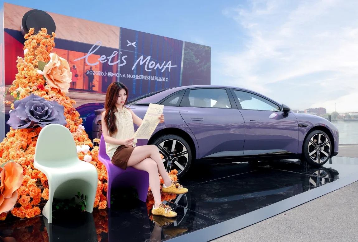 2026款小鹏MONA M03媒体试驾现场成了春日OOTD秀场,