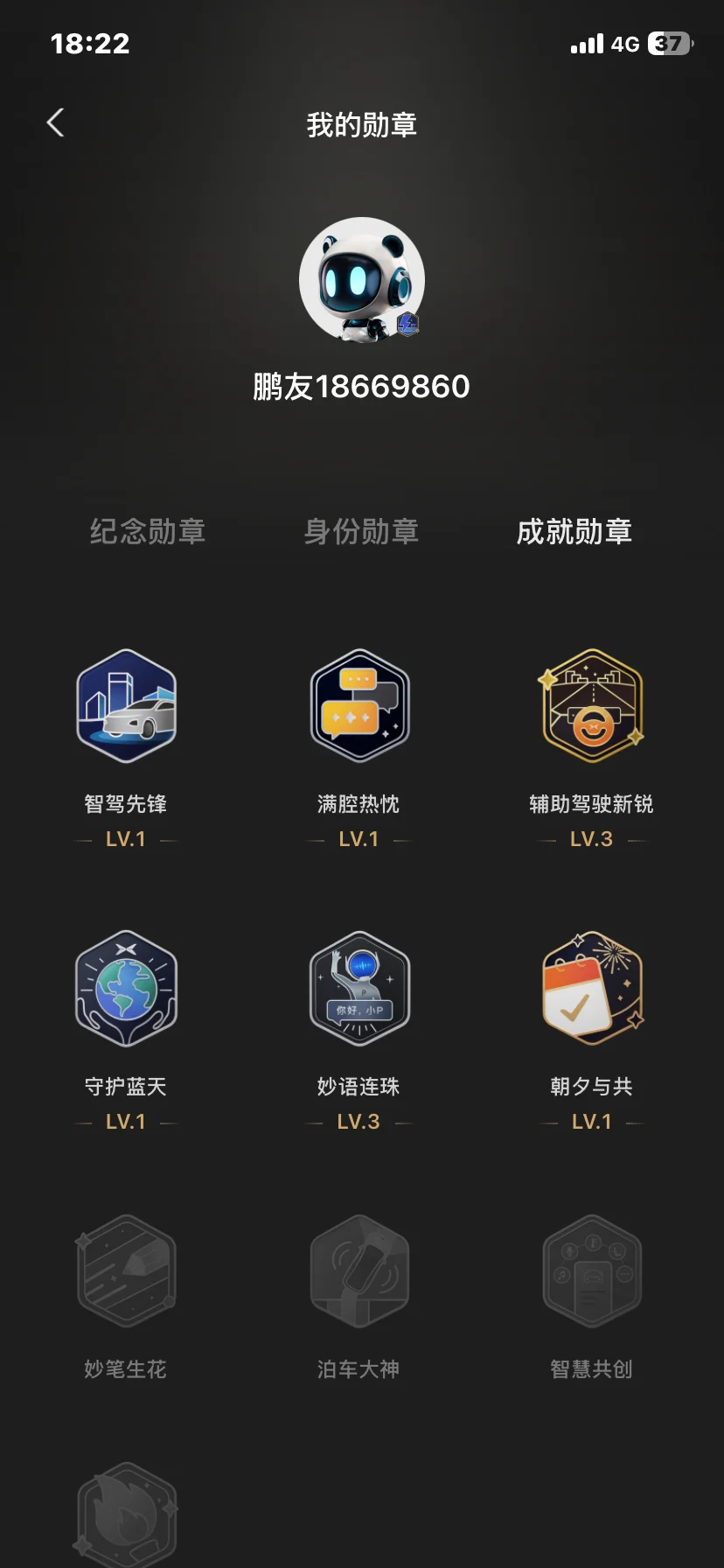 今年刚加入小鹏的大家庭,用车才两个多月,集了7个勋章多吗?后续继续解锁更多的勋章吧!