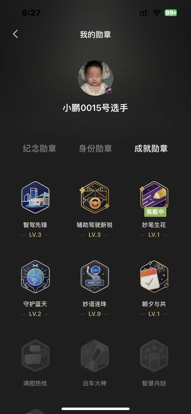 买车到现在的勋章,还是小萌新,半年跑了17000➕公里,妙语连珠lv9,其他都是新人价格,有没有集勋章兑换勋章冰箱贴的活动,那我肯定会更有动力集勋章😏
