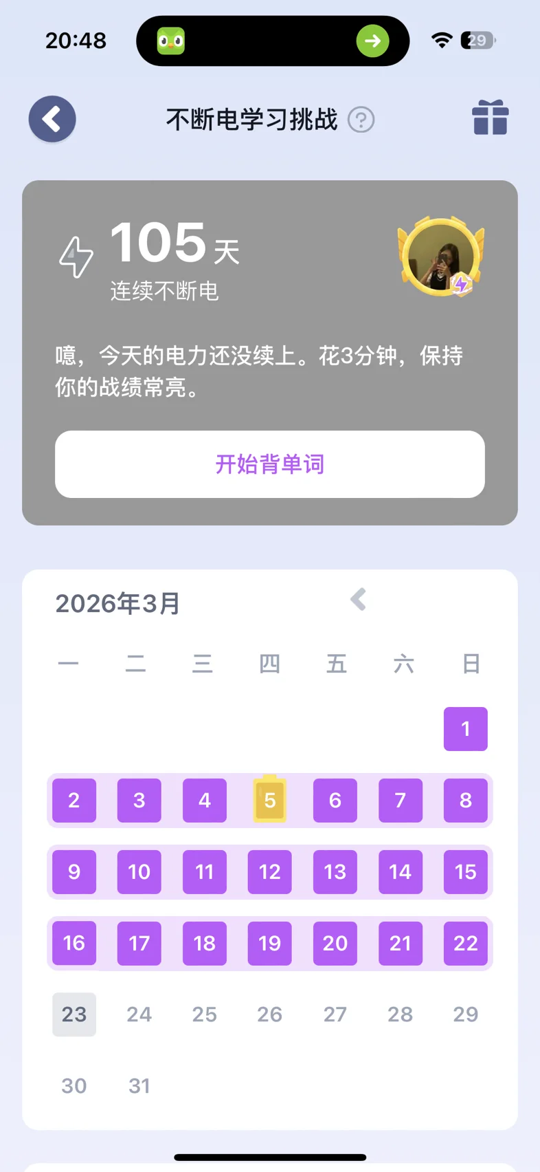 坚持每天背单词练口语,已经坚持三个月,继续加油👏