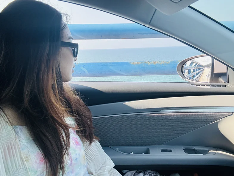 把车开到海边,大海和天空的蓝色连成一片,摇下车窗,半躺在座椅上,微凉的海风拂来,带着海水的味道,发丝被轻轻扬起,此刻耳边响起一首白色风车,咸咸的海水~~