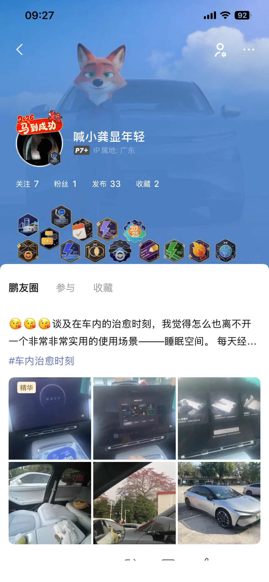 这好像是我得到的第二枚勋章,第二枚就是小鹏第一百万辆下线的勋章,当时还看了车间下线的直播,觉得自己没选错车,越办越好!😍