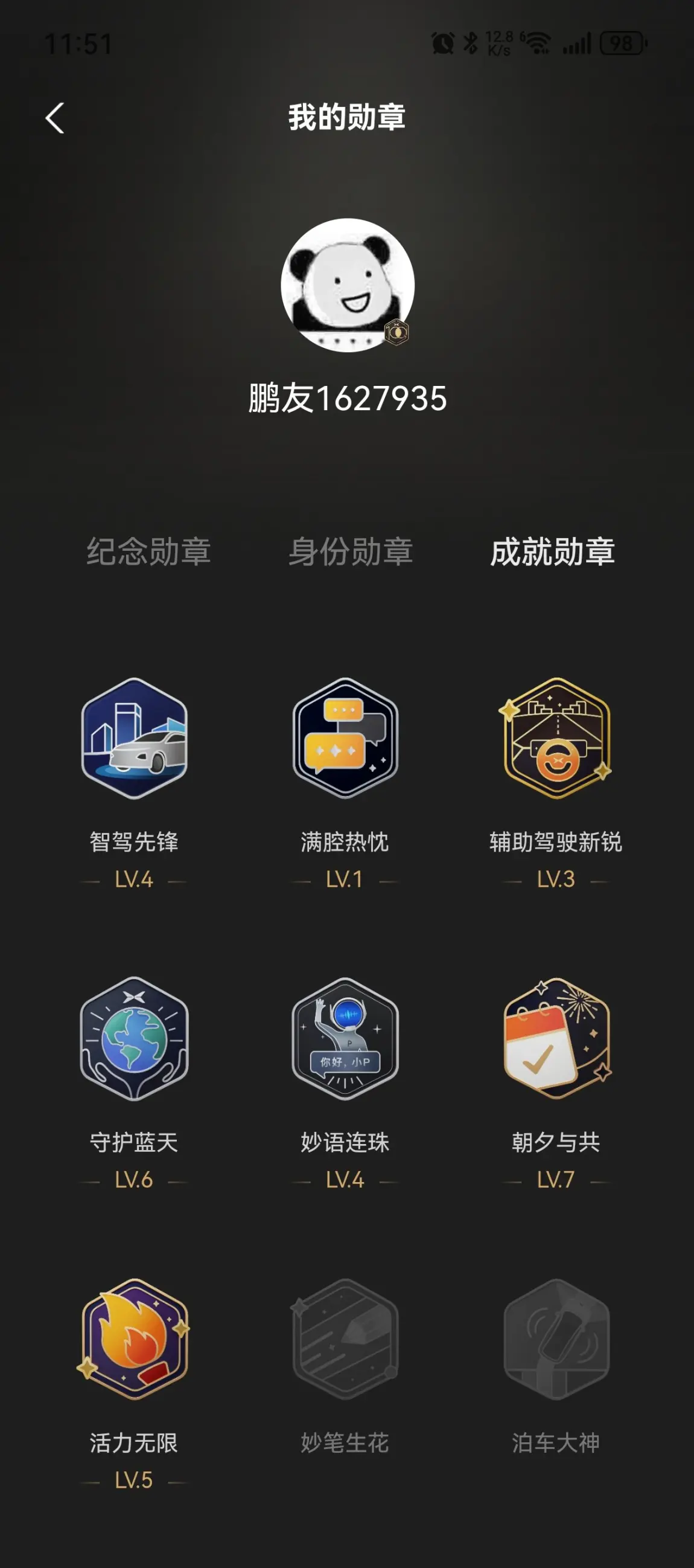 从提车到现在,这些勋章不仅是身份标识,更是我和小鹏、和各位鹏友双向奔赴的证明。每一枚徽章背后,都有一段专属的出行故事,有智驾的惊喜、充电的便捷、社区的温暖。