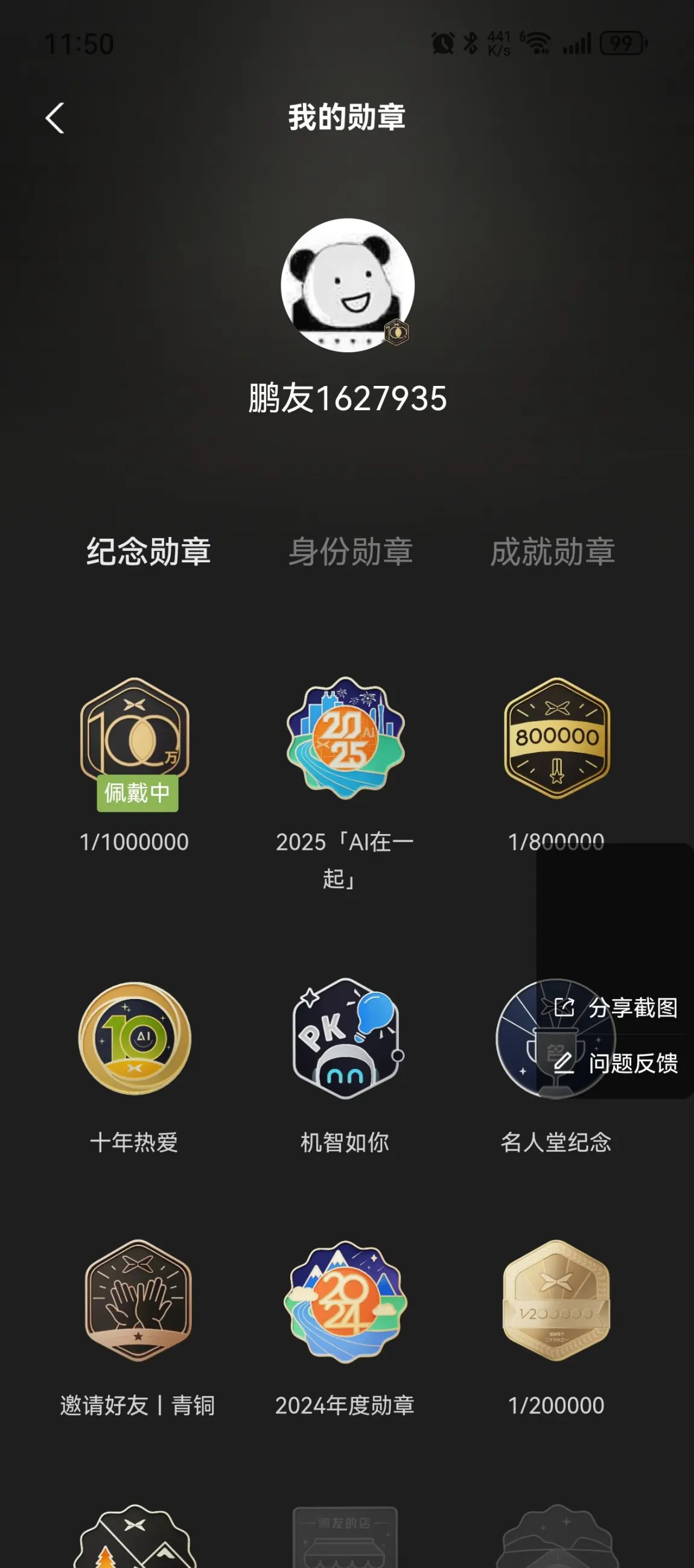 还有「十年热爱」勋章,陪着小鹏走过十年智能出行路,从初代车型到如今的全场景智驾,这份热爱从未褪色;2024、2025年度勋章,记录着我和小鹏一起走过的每一年;「秋日鉴赏家」「邀请好友|青铜」这些限定款,也都是社区活动里满满的回忆杀~