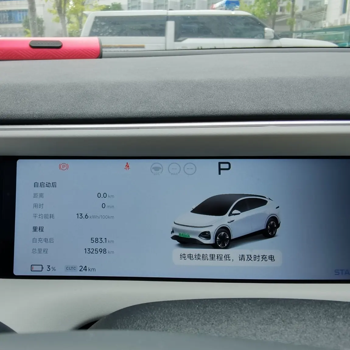 官方755KM续航,目前已行驶13W+公里,满电后实测583km(高速行驶里程大约240km),剩余显示还能续航22km,你们说O不OK?