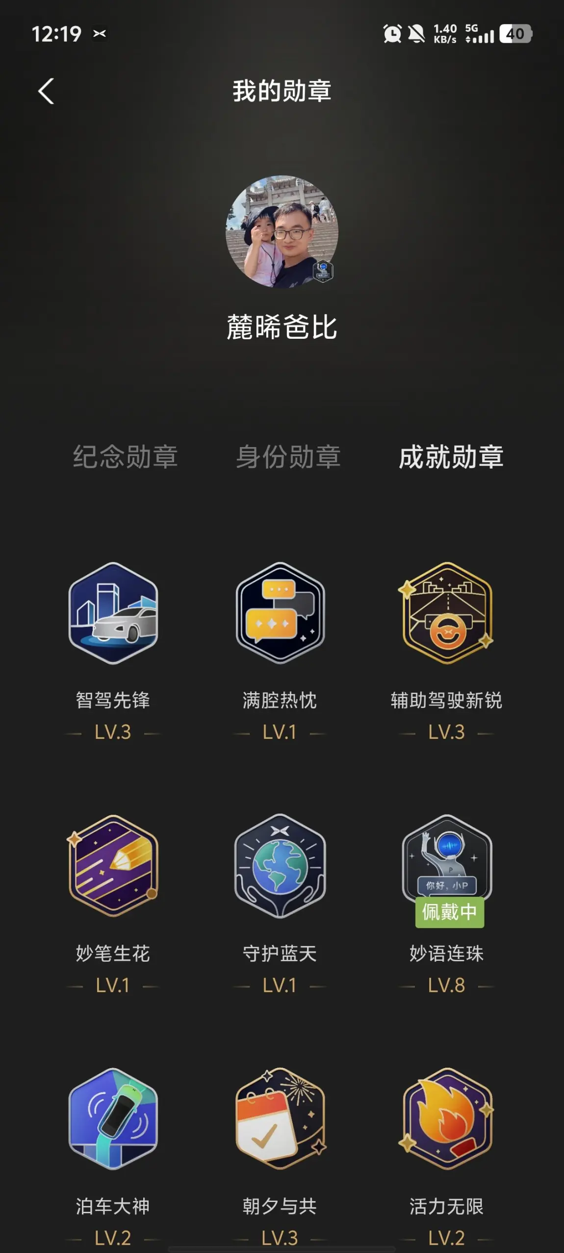 从“智驾先锋”到“辅助驾驶新锐”,LV.3的等级里藏着无数次握紧方向盘的专注——是深夜高速上NGP稳稳护航的安心,是城市拥堵时智能跟车的从容,每一次解锁新功能、每一次安全抵达,都在为这两枚勋章添上一笔重量。它们不只是等级的证明,更是我与智能驾驶从陌生到信任的陪伴。