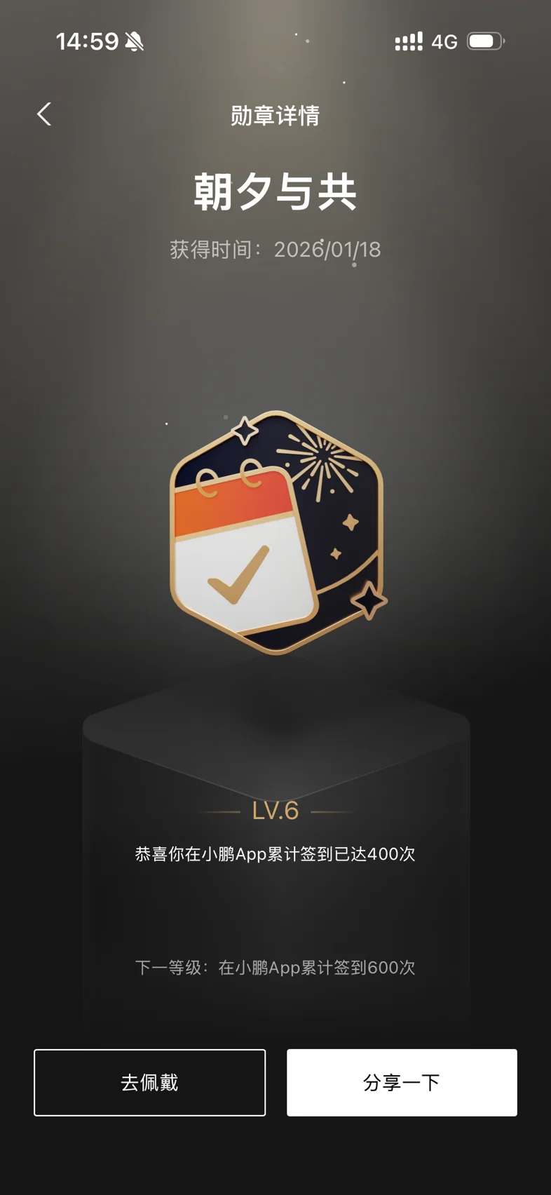 #晒晒我的勋章# 从100次智能泊车的从容,到400天朝夕相伴的坚守;从3000鹏友值的热爱,到每一次副驾藏着的温柔小心思。这些勋章,是时光给我的专属纪念,也是我与小鹏同行的每一步印记。车窗外的风景在变,车里的温度始终如初,未来还要带着更多热爱,继续出发🚗💨