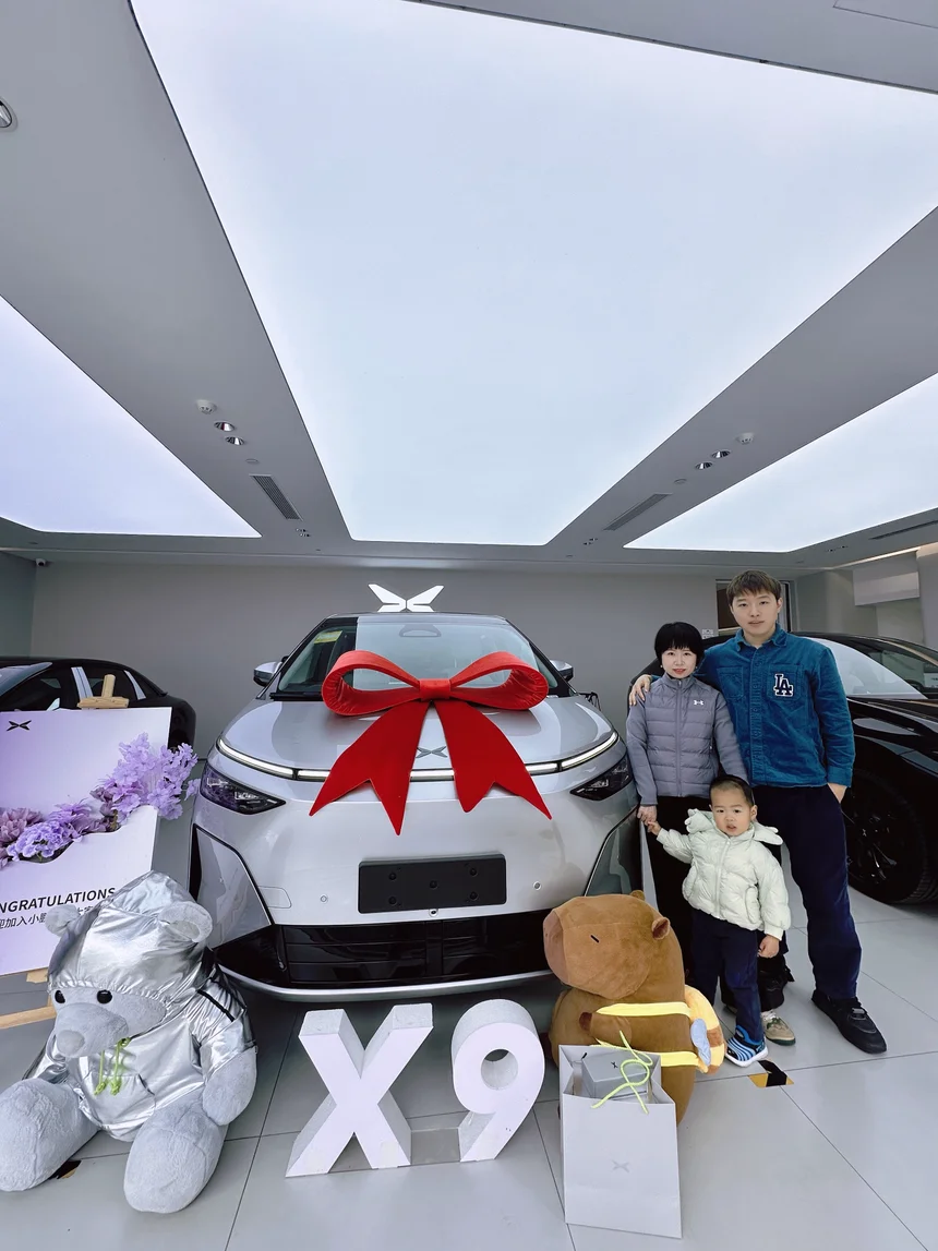 #我的提车作业# 因为对智驾没有要求,果断入手了30.98万的26款纯电x9,特斯拉置换的小鹏,之前是自己开的爽,现在想家人们坐得爽,对比了多家品牌,最后入手x9,考虑到空间,科技颜值等多个因素。我喜欢车头我老婆喜欢车尾的造型。整体提车流程很简洁。拍牌也很顺利还选到了豹子号码。贴上了自己的高达车衣。感谢小鹏提供到的情绪价值。