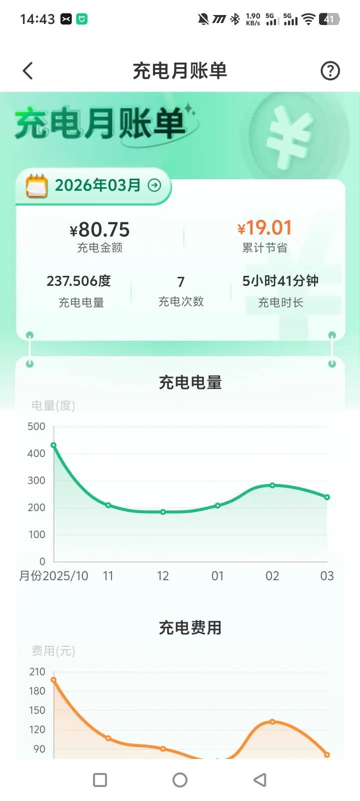 每次充电基本上都是最便宜的时候去充电,电费一个月大概在100左右,如果经常有优惠券,还能便宜一些,你们呢?有固定的充电桩品牌吗?