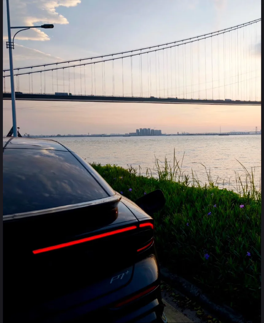 开着p7+智驾去看深中大道,看日落,是一件美好的事,拍照也好看!