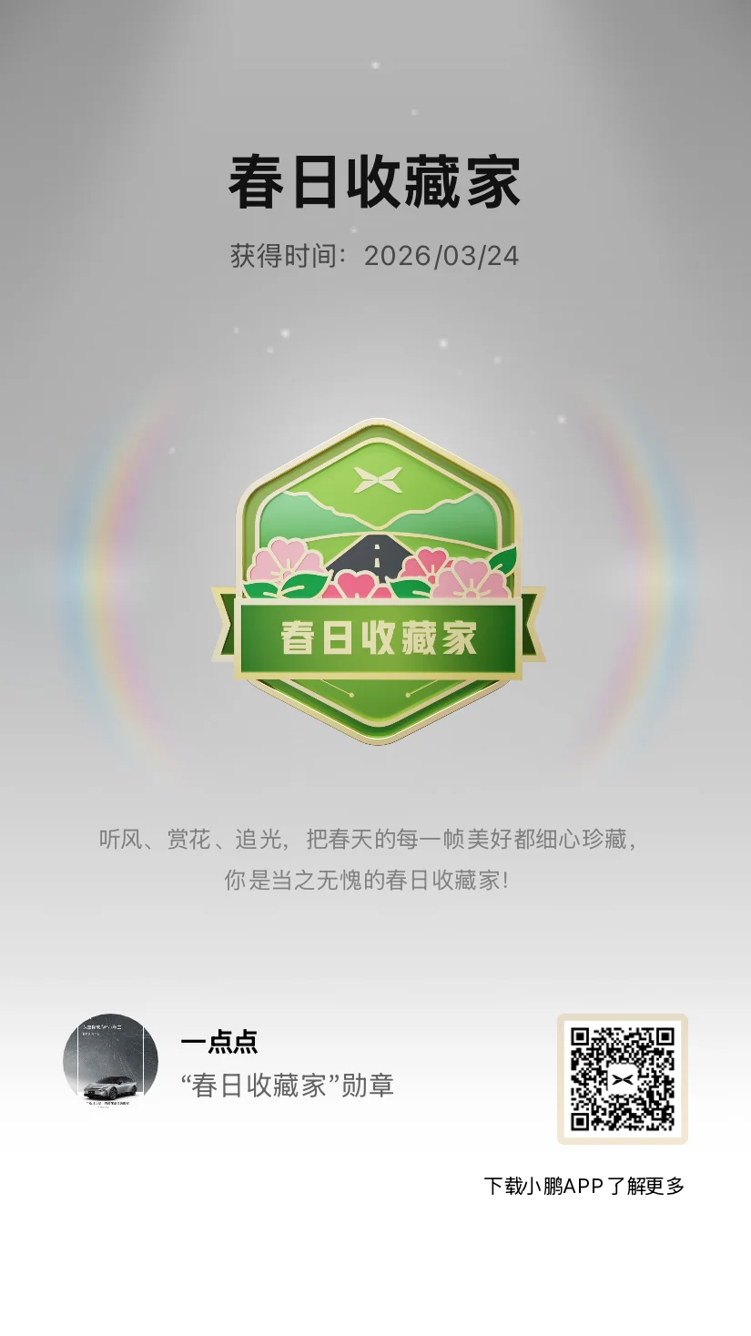 这春日收藏家的勋章真的是太好看了,小鹏社区做勋章太用心了好评!