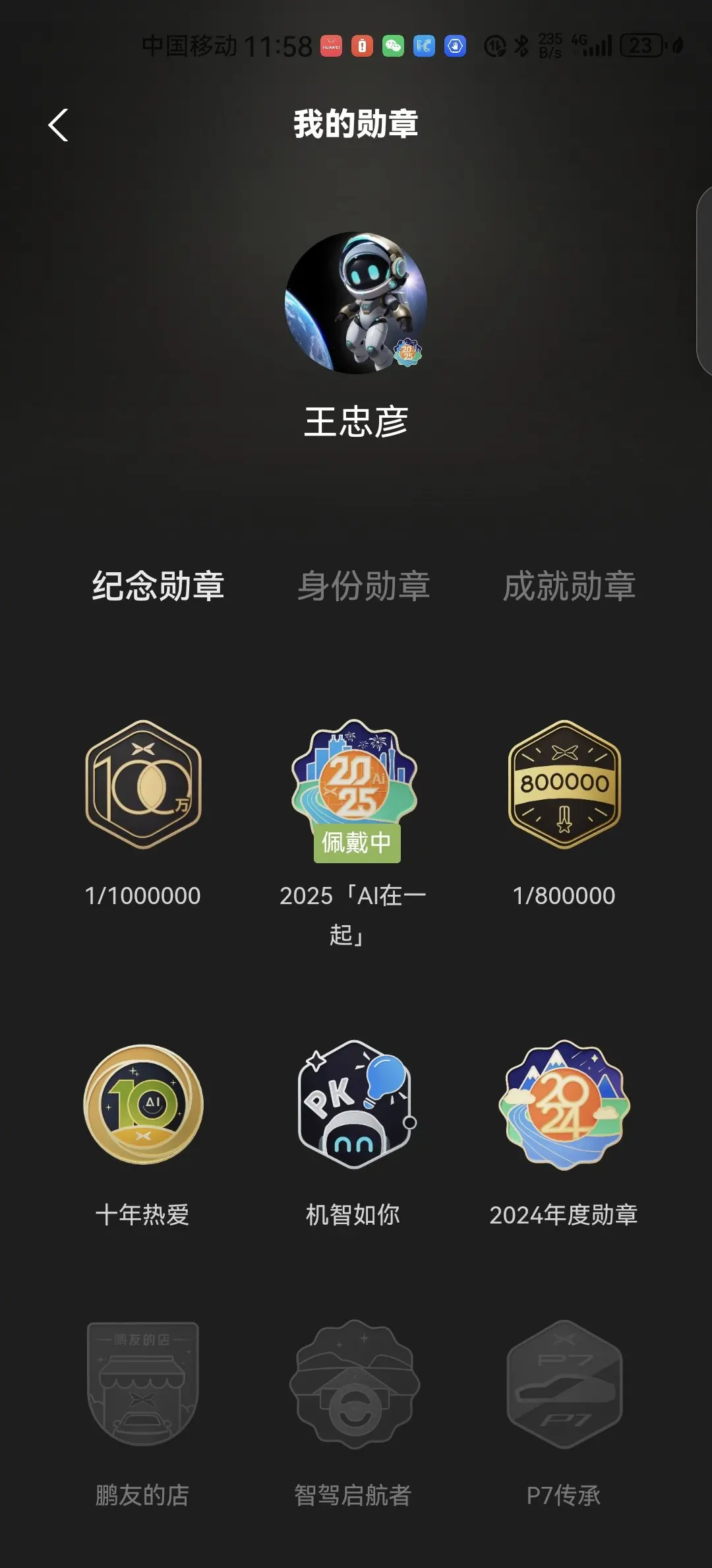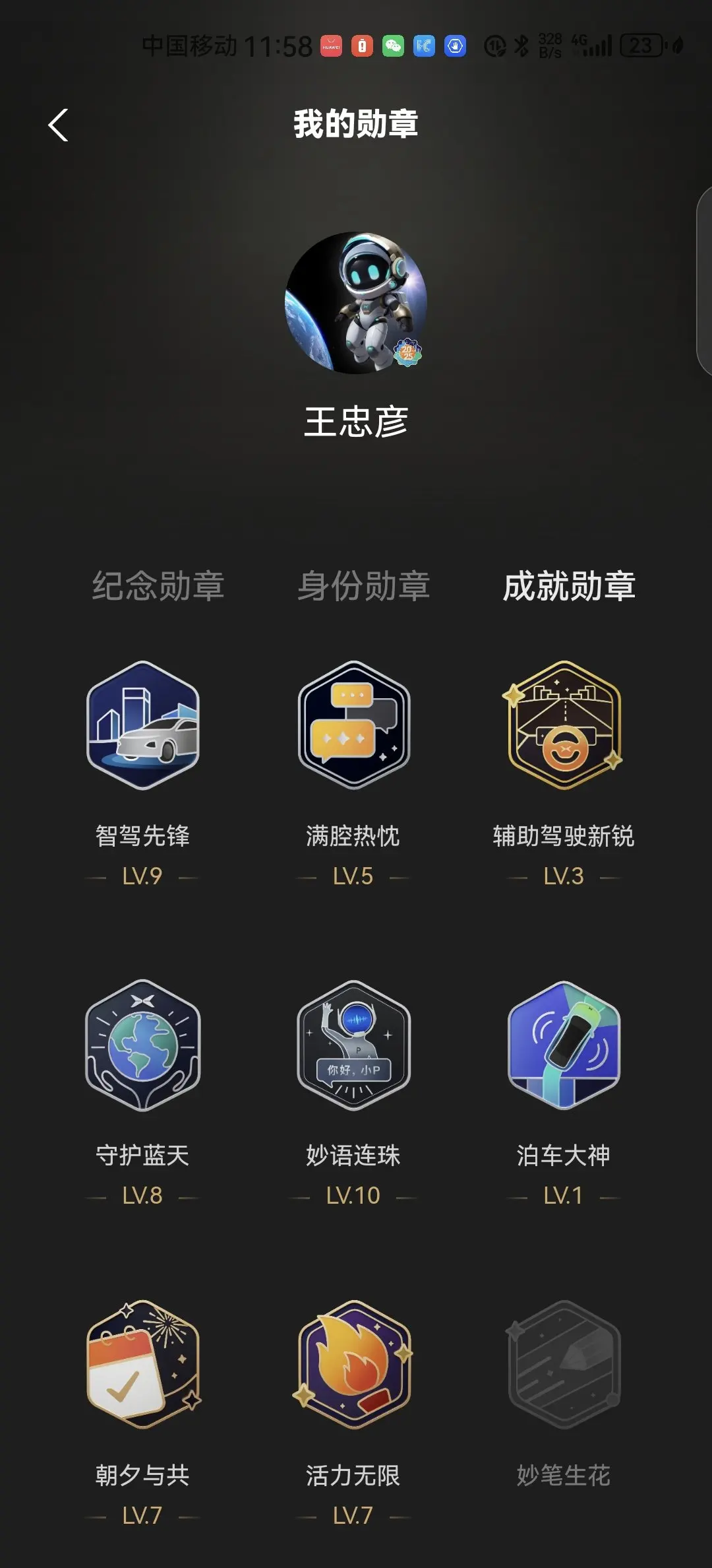购买小鹏G9650max30个月已经跑了10万km,获得各种勋章18枚,都是源于对小鹏的爱,没一枚勋章都包涵对XP美好的回忆!