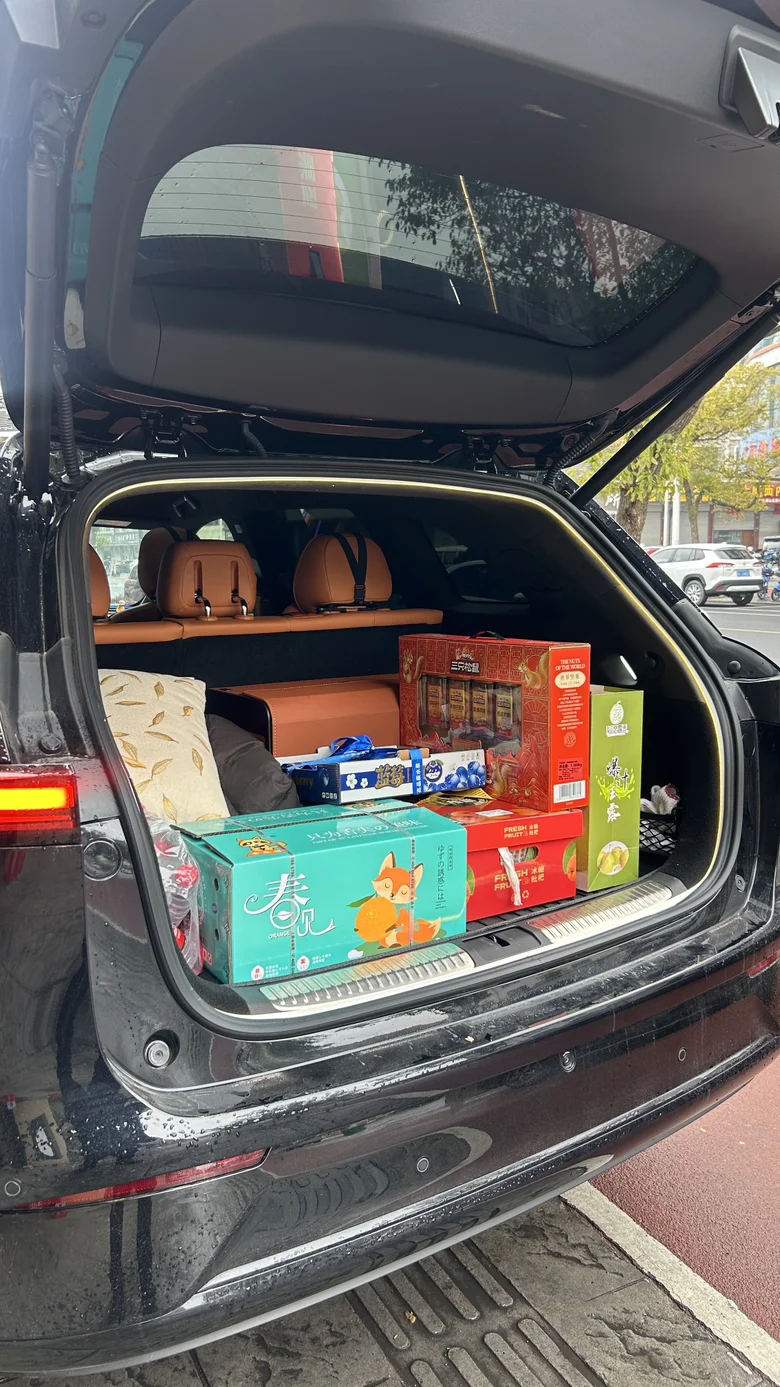 过年走亲访友时,后备箱更是派上了大用场。成箱的年货、礼盒、给长辈的礼品,还有孩子的玩具、零食,满满当当堆起来,却一点也不显得拥挤。宽大的开口和规整的布局,让大件物品搬运格外顺手,再也不用为了“塞不下”而发愁,走亲访友的仪式感,全靠它稳稳托住。
