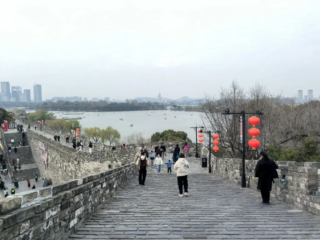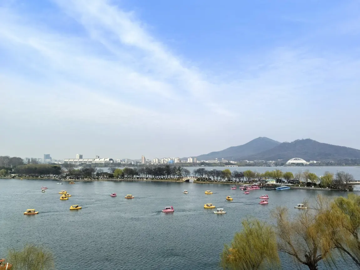 第一个周末漫步玄武湖畔,登上台城城墙,看湖面游船点点、波光粼粼,远眺紫金山绿意盎然。沿着城墙环湖而行,金陵城的标志性建筑尽收眼底,夕阳时分,更是定格了古鸡鸣寺与紫峰大厦的古今同框,浪漫又震撼。