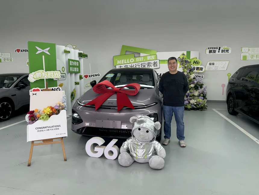 关注小鹏一年,去店里试驾了新G6,老公果断下定,今日已完成新车交接,星幕紫颜值在线