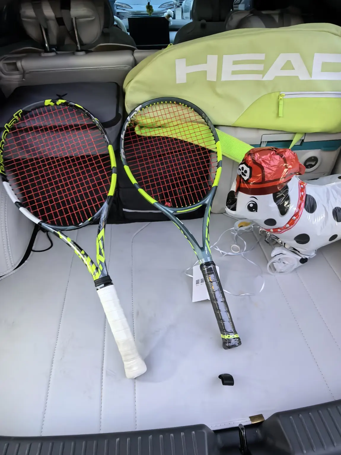 和小p的后备箱,真的很能装,这个空间放球拍和球车都还有很大空间,太实用了"