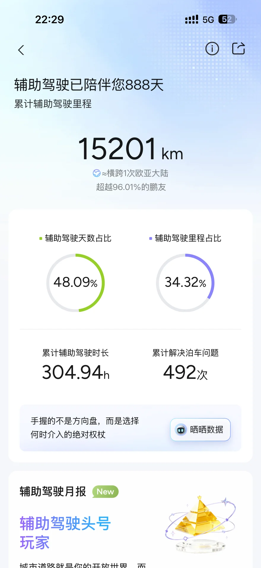 888天陪伴记录,横跨亚欧大陆,小P平均每天帮我接管驾驶17公里,简直是通勤小帮手👏回想888天前接触的第一代P7辅助驾驶只有依赖高精地图的高速NGP,后来换到P7i激光雷达版的城XNGP,再换到现在开的P7N的VLA2.0,我的三代P7系列也算是见证了小P这些年的成长之路💪随着技术的迭代,小蓝灯💡点亮的频率越来越高。第二代VLA# 辅助驾驶体验#