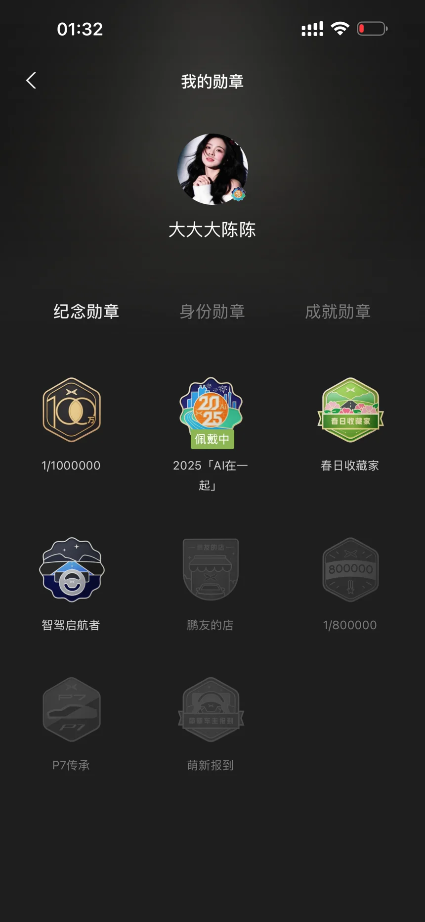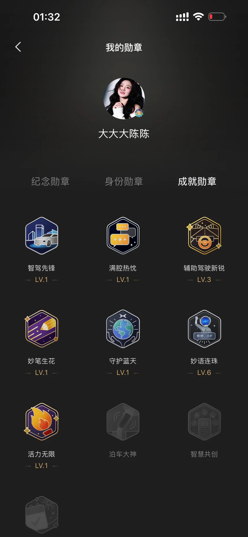 这都是与小p相伴的印记呀,因为都是家充所以少了几个充电的没解锁,期待解锁更多勋章哈。