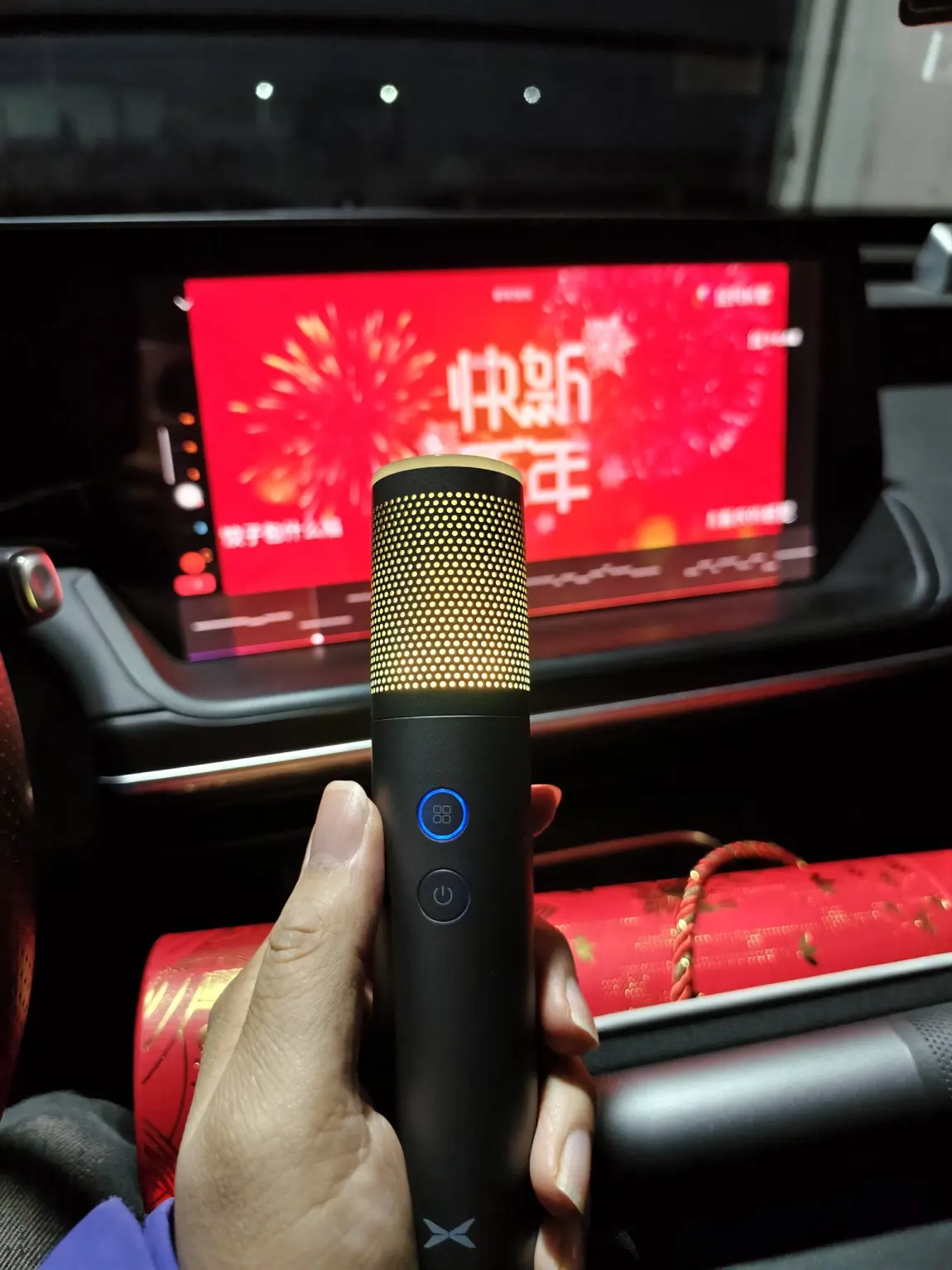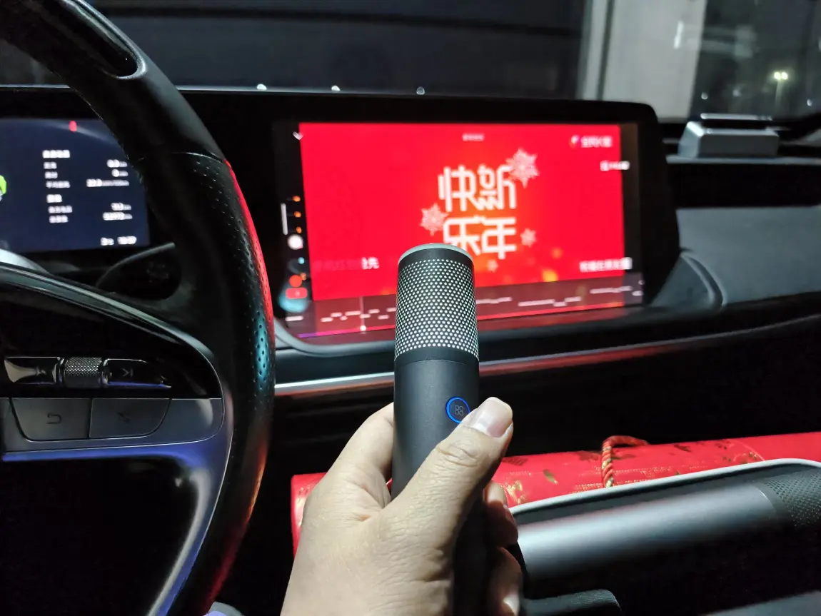 #好物分享# 说到车载好物,我一定要分享小鹏的官方麦克风,这是我觉得买的最值的东西,它的氛围感非常强,自带氛围灯,而且音质特别好,在心情不好的时候可以自己一个人在车上唱几首歌,在今年春节的过程中,我一家人在车上欢唱过年歌曲 春节的氛围特别满,建议大家都给我买这个麦克风