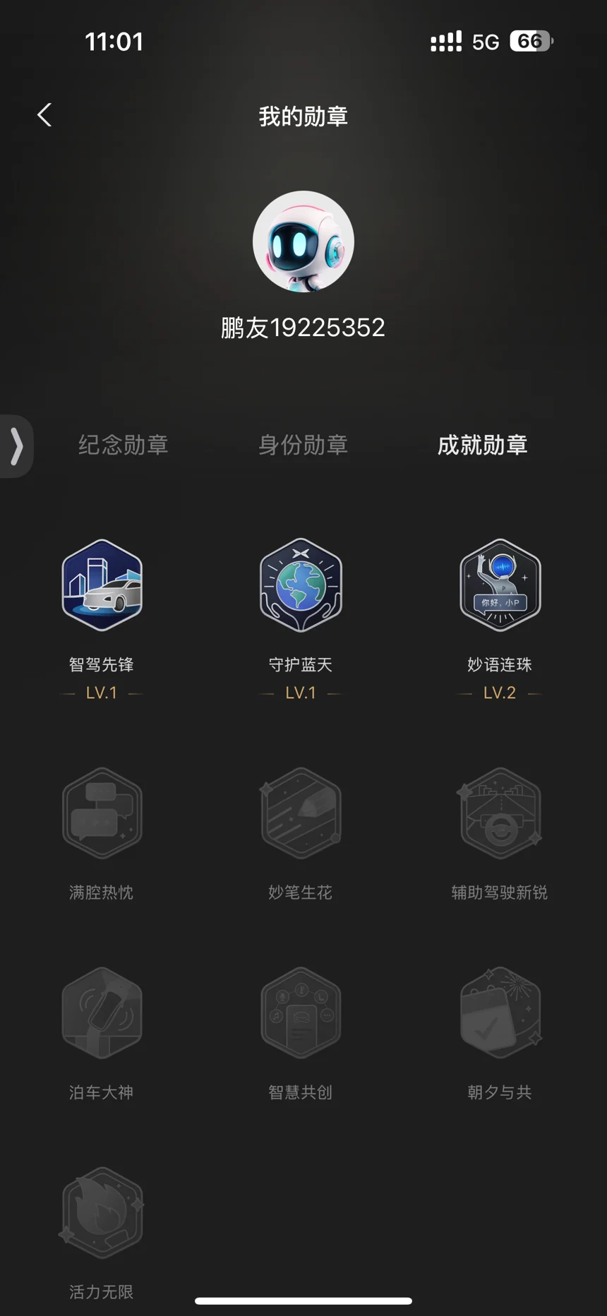 新鹏友报道,提车不到一个月,小鹏各项功能都很满意,希望以后解锁更多勋章