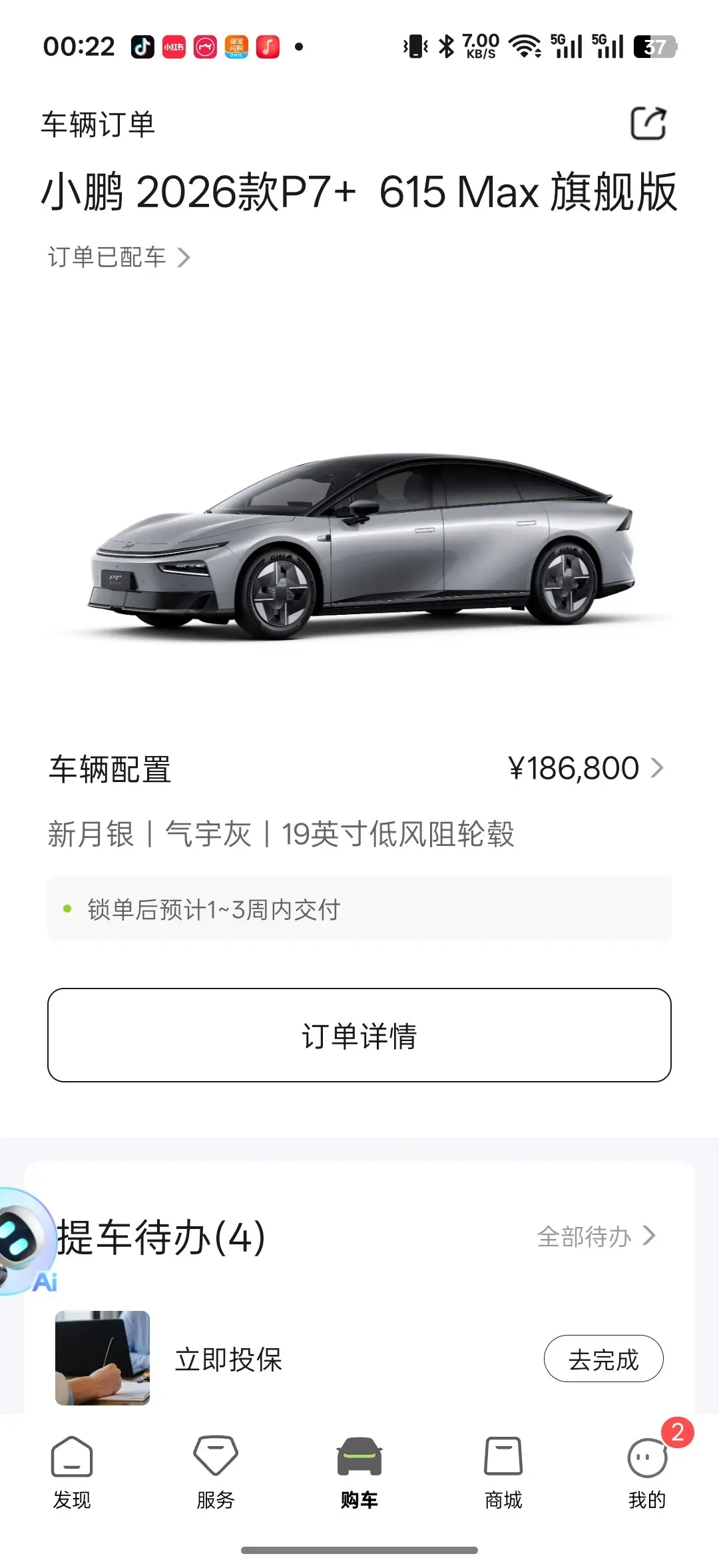 下单到配车就花了两天 第四天销售就通知我们去提车啦