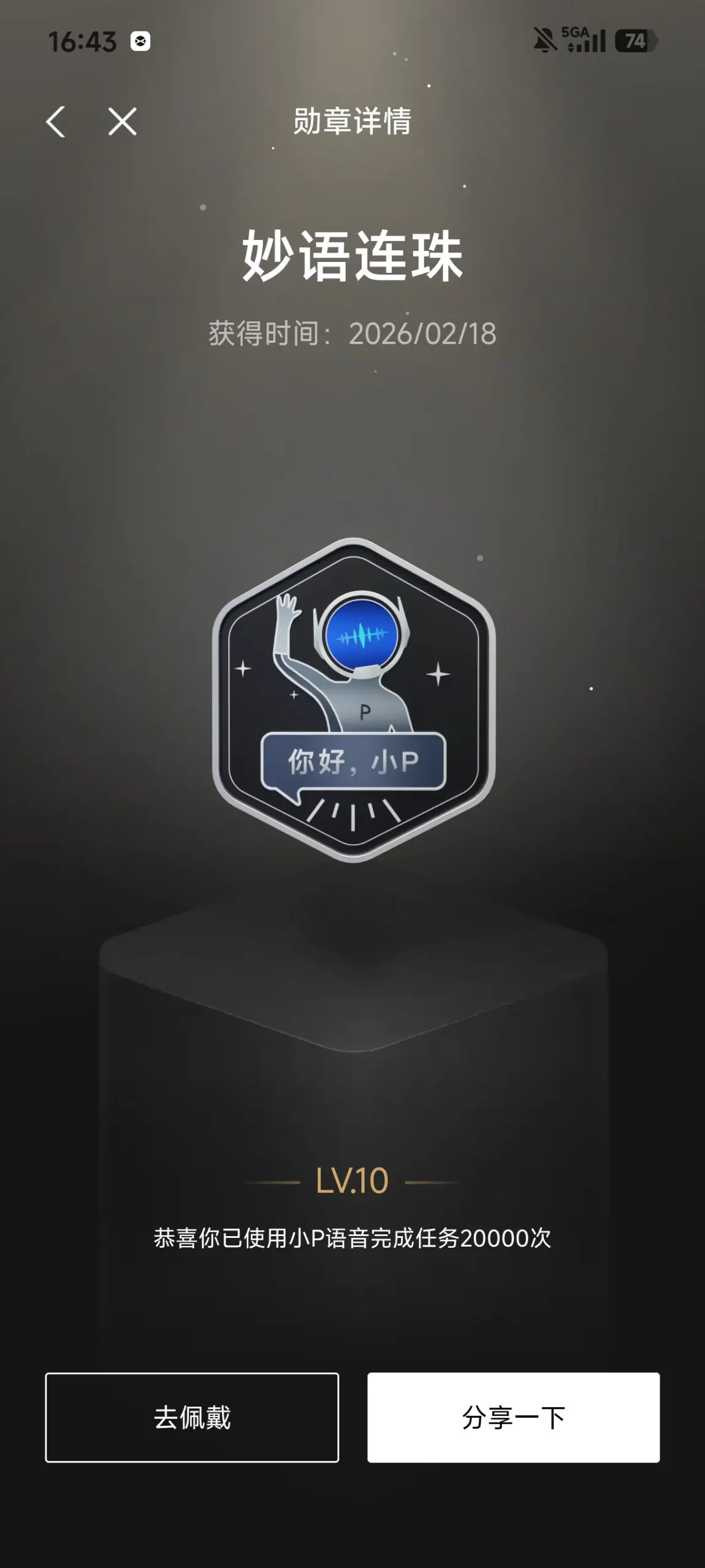提车还不到一年,我家“你好小P”就已经冲到10级勋章了。