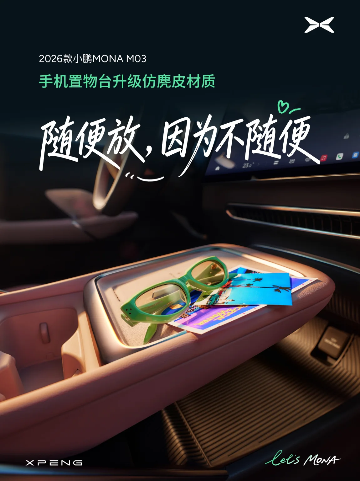 2026款小鹏MONA M03 精致焕新,不负期待。把对质感的执着,藏进每个角落,从车外到车内,从目光所及到指尖所触。车漆的质感在光影间自然流淌,内饰选用细腻麂皮,把柔软融入日常——指尖所至,皆是温柔…真正的精致,是每处细节都经得起推敲。