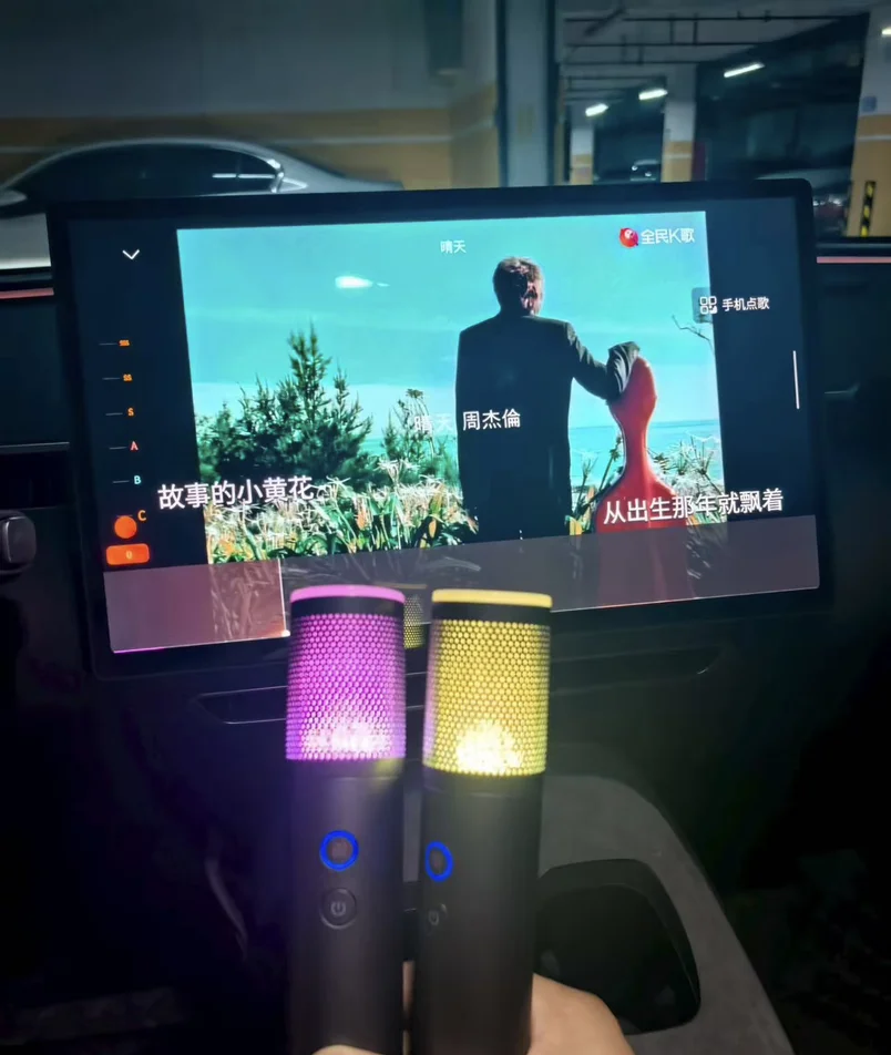 #好物分享# 小鹏商城下单了小鹏光年车载麦克风,收到麦克风时被它的颜值惊喜到了,接收器插入中控USB接口,打开K歌软件长按麦克风开机键就自动连接上了。使用下来音质很好,没有杂音也没有啸叫声。下周计划自驾去露营,一路上简直不要太爽哈