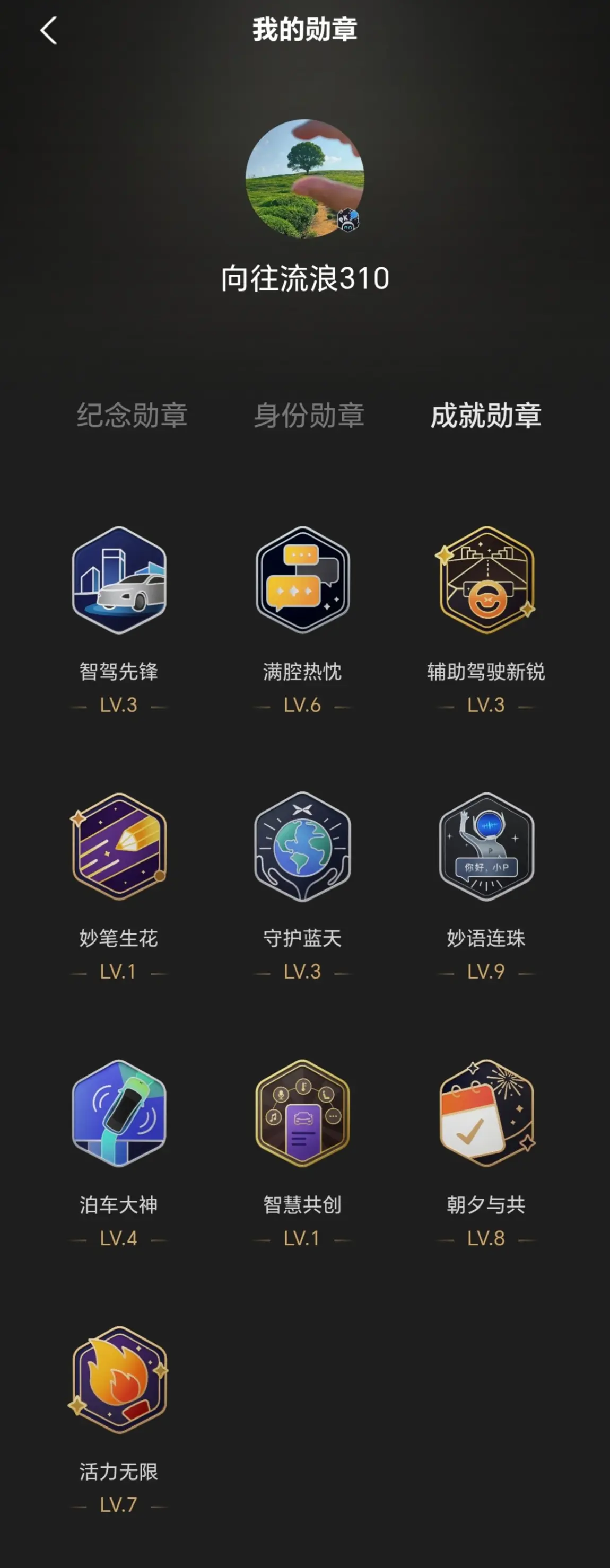 两年多了,小6变成了老6,用车越来越顺手,共获得了22枚勋章。其中最让我值得骄傲的是智驾先锋和泊车大神两枚勋章,为老6点赞!