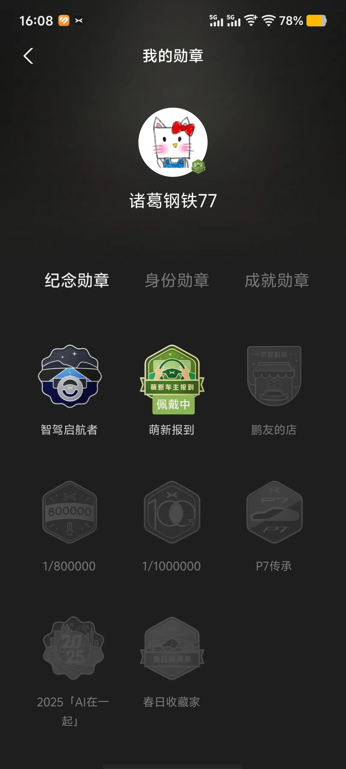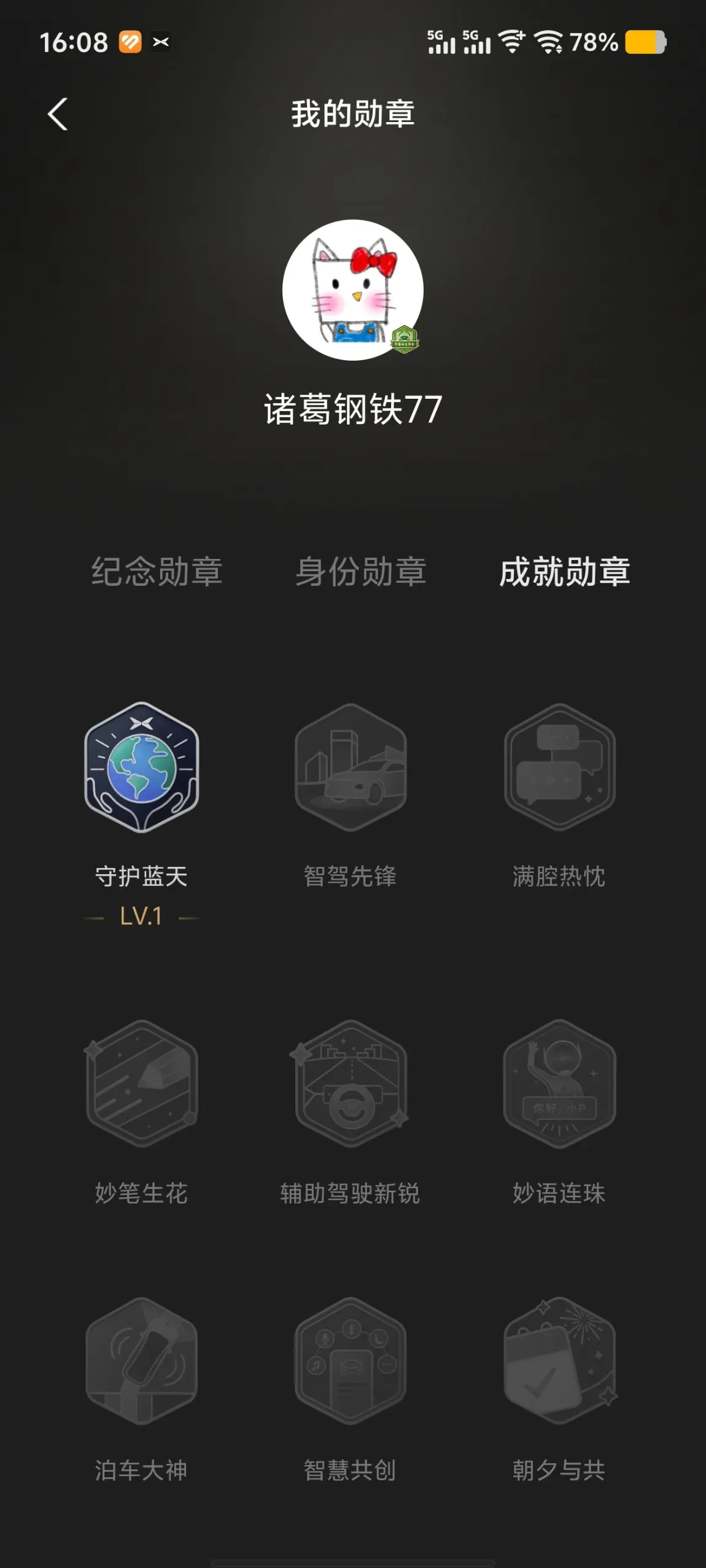 #晒晒我的勋章# 小鹏App的勋章真的太戳人啦!每一枚都颜值与意义并存,是和小P同行的专属印记~🏁 首枚勋章:智驾启航者这绝对是我的入坑勋章!提车后跟着新鹏友指引,完成基础智驾任务就解锁了 。科技感六边形设计,记录我第一次用ACC/LCC的激动时刻,是智驾之旅的起点,满满的仪式感!提车20天,获得四枚勋章🎖️,虽然还不算多,但每一枚都藏着用车、互动、成长的回忆。期待更多公益、旅行、节日主题勋章,继续收集和小鹏的每一段故事~@社区活动小姐姐
