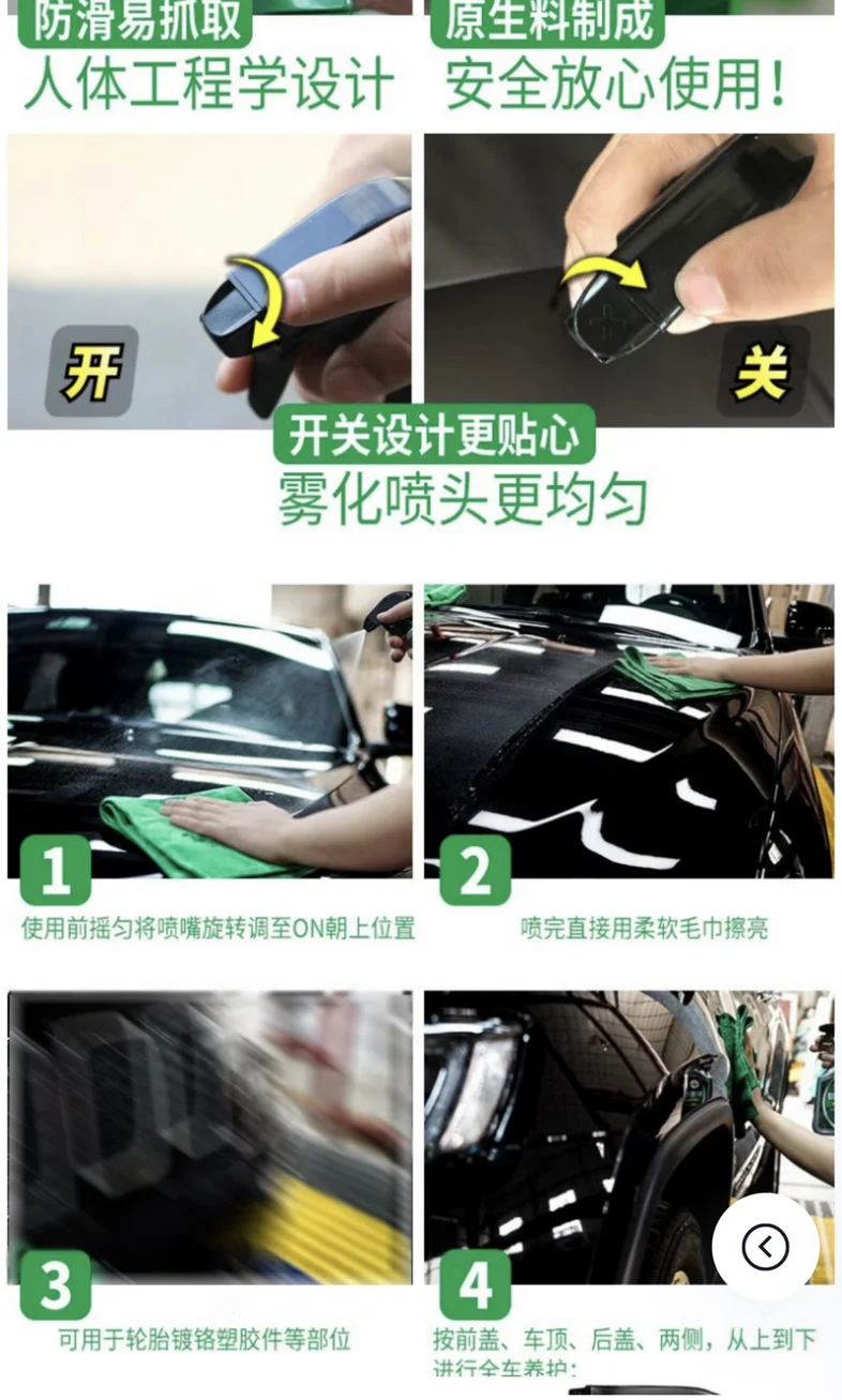 • 🧴 操作超简单:喷一喷、擦一擦,4步搞定全车养护,新手也能轻松上手